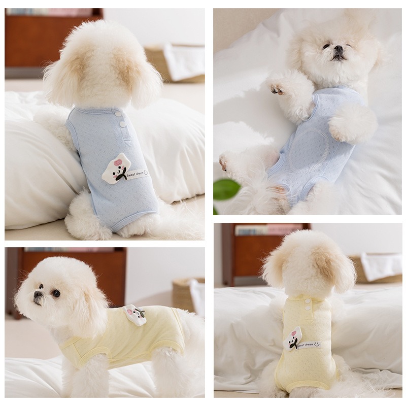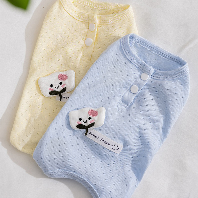 Let your furry friend drift into comfort with this "Sweet Dream" Cartoon Cat Pet Shirt! Available in soft yellow and light blue, these breathable mesh tees feature adorable cat patches and a "Sweet dream" tag with a smiley face, adding a touch of cuteness. The button closure ensures easy wear, while the lightweight fabric keeps your small pet cool and cozy. Perfect for daily wear or lazy afternoons, this shirt combines style, comfort, and a whimsical design that will make your pet the talk of the town.