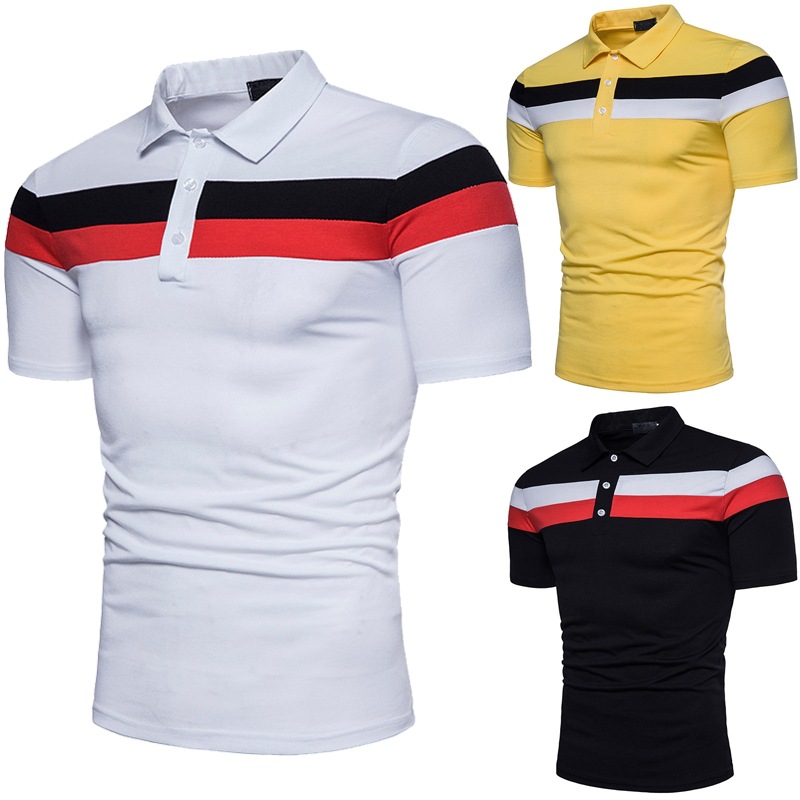 Spring And Summer European And American Style Men's Clothing Stitching Fashion Casual Lapel Short Sleeve