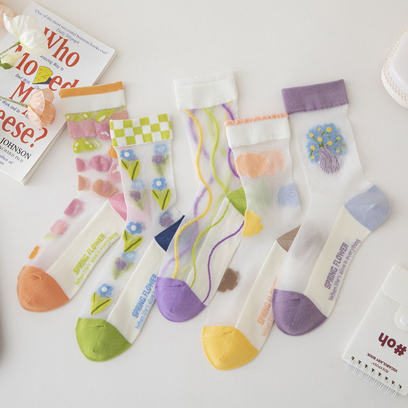 Color: Pink lotus, orange, blue and yellow coffee, water strip, dream tree, white and green socks