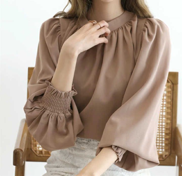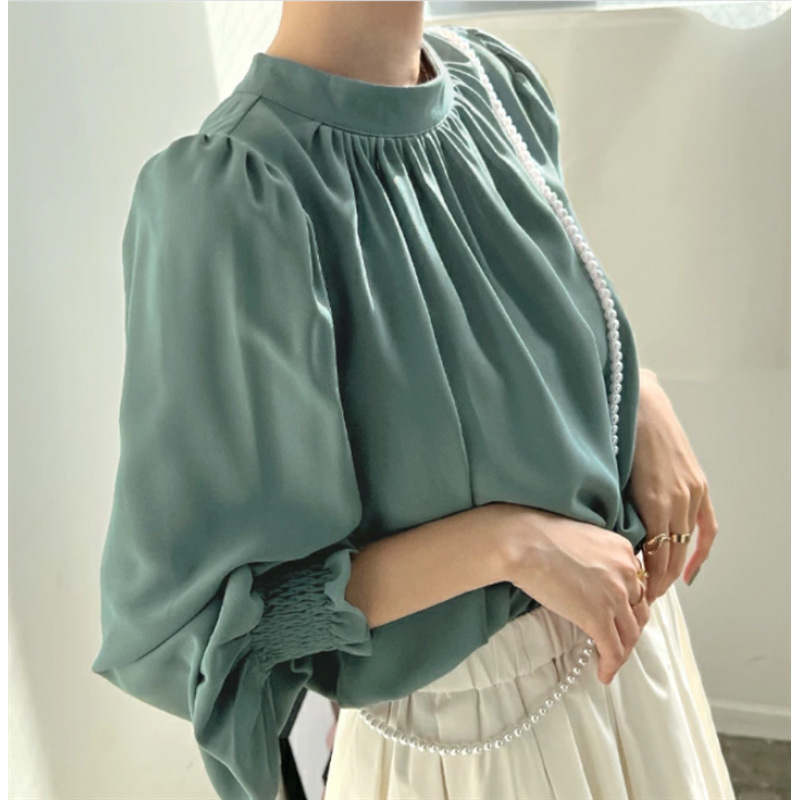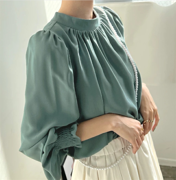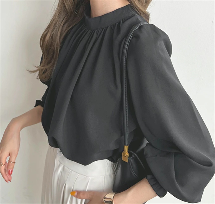 Spring And Summer High-neck Puff Sleeve Chiffon Shirt