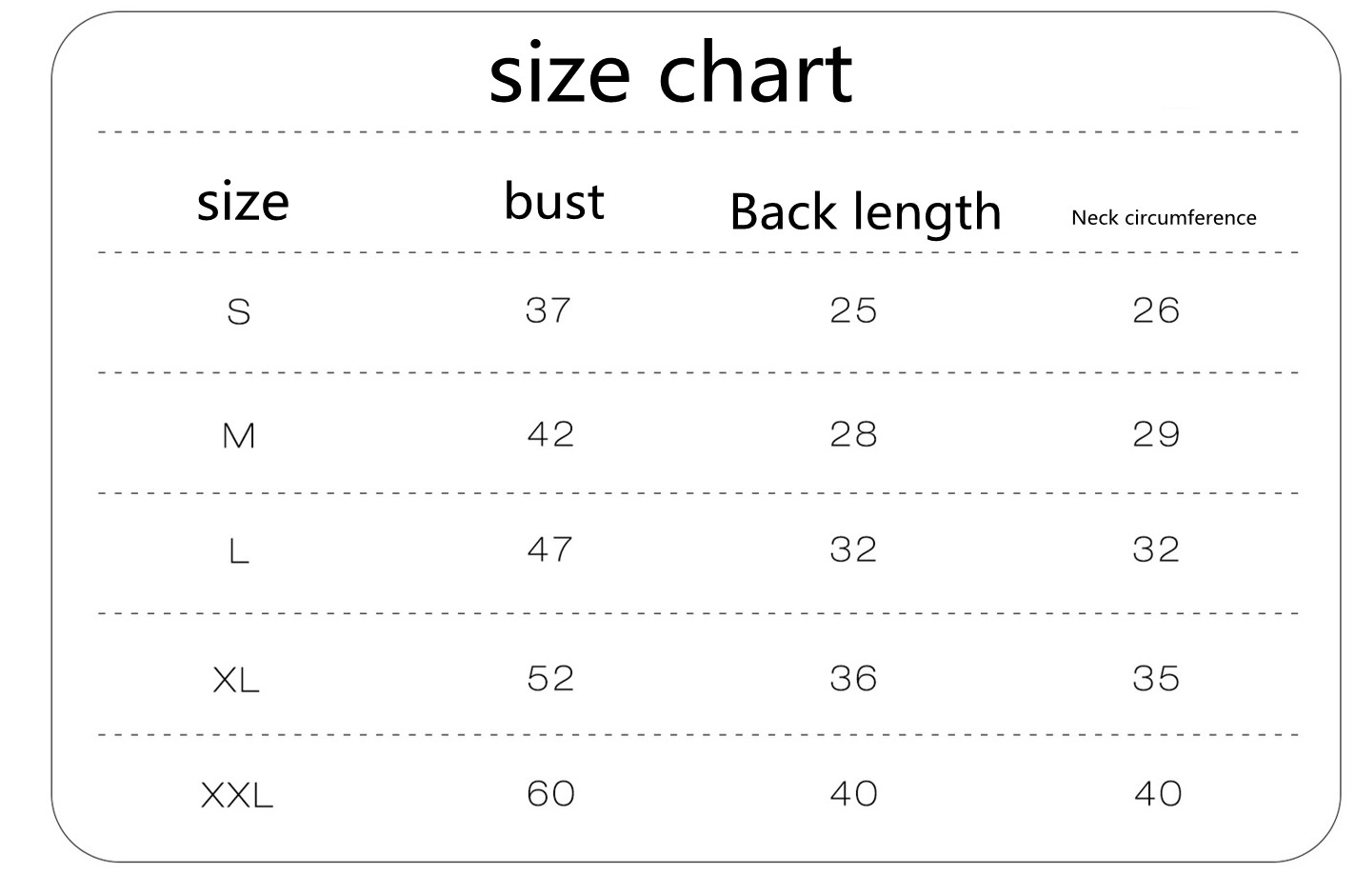 Size: S, M, L, XL, XXL