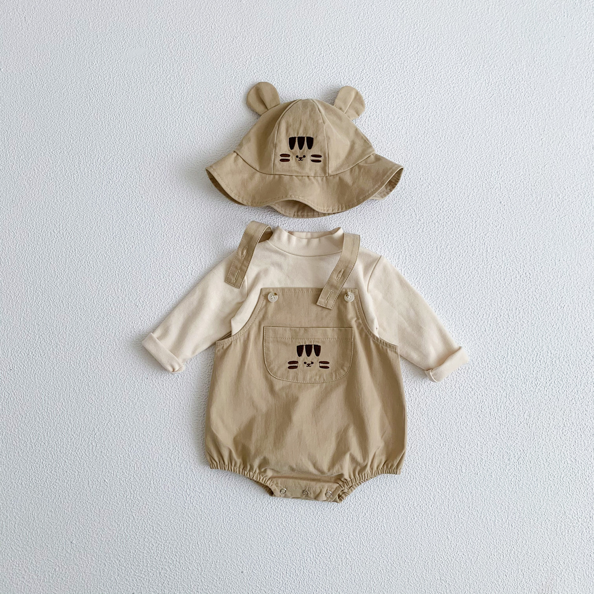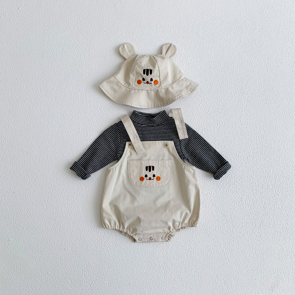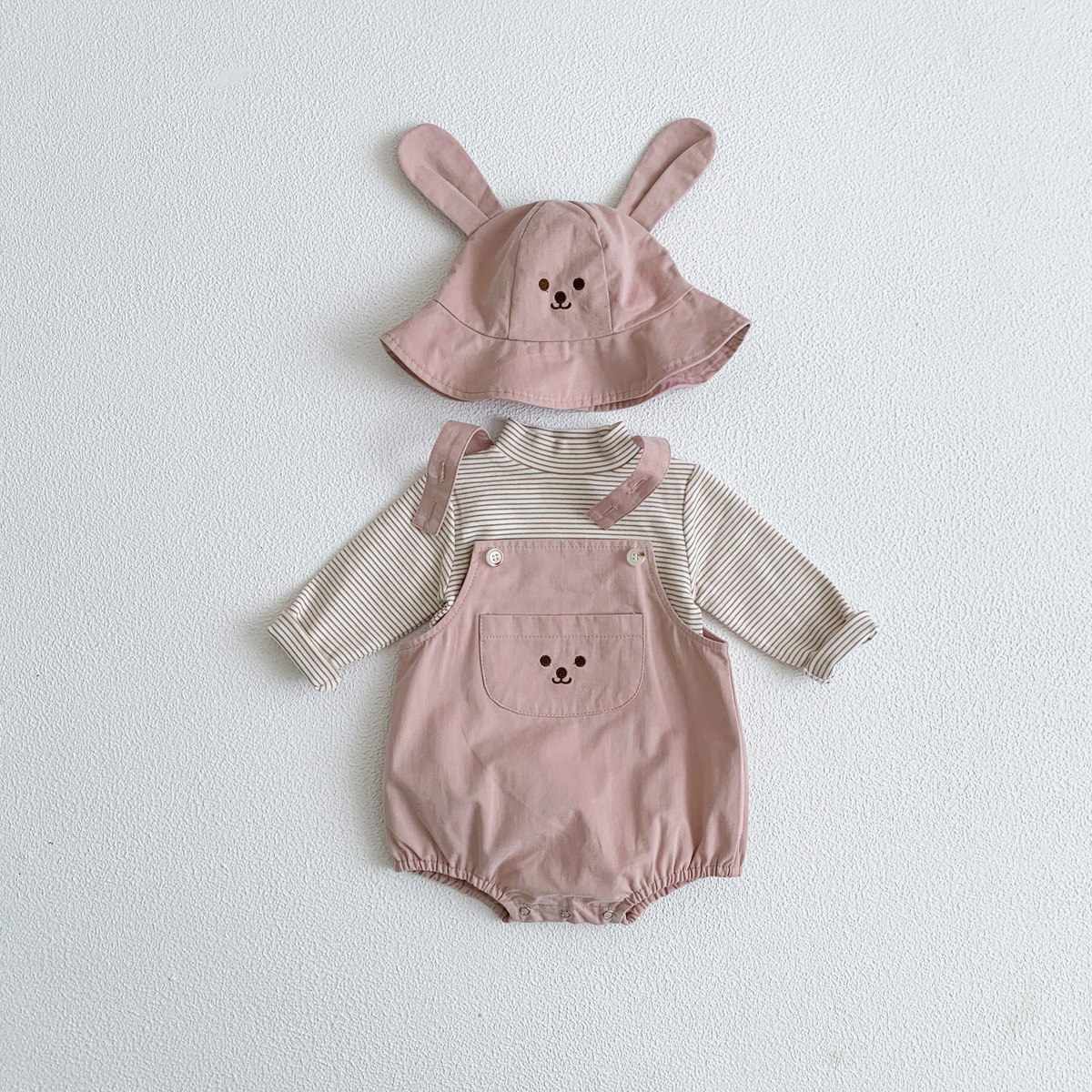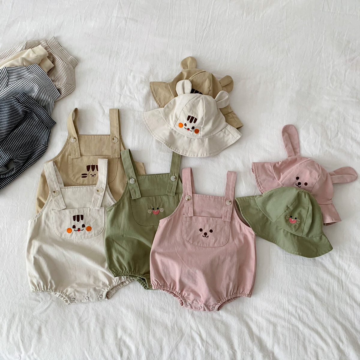 Color: apricot strap (with hat included), army green strap (with hat included), khaki strap (with hat included), pink strap (with hat included), apricot base shirt, dark gray base, khaki base, white striped base