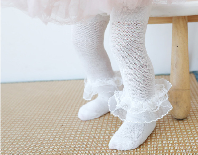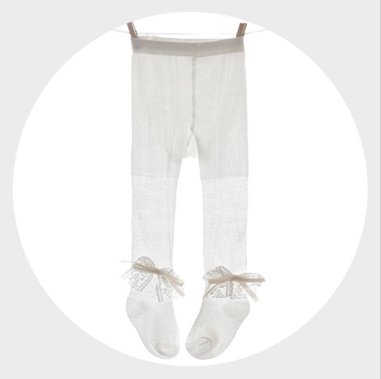 Color: white lace, white bow, white dotted edge, pink flower, orange lace