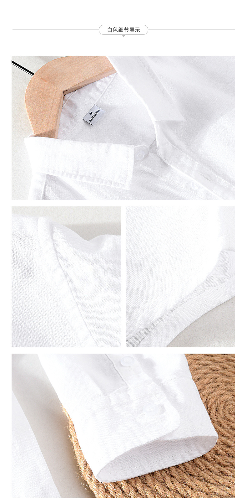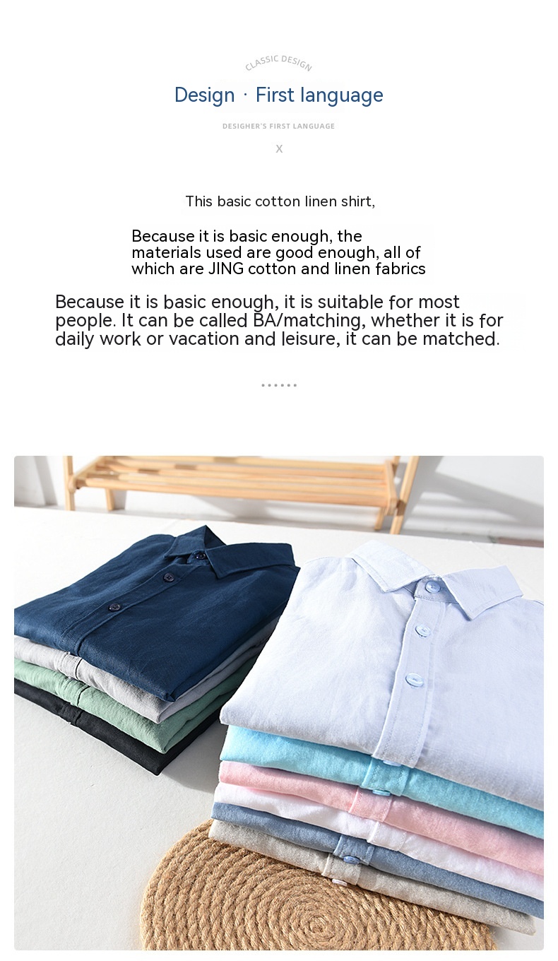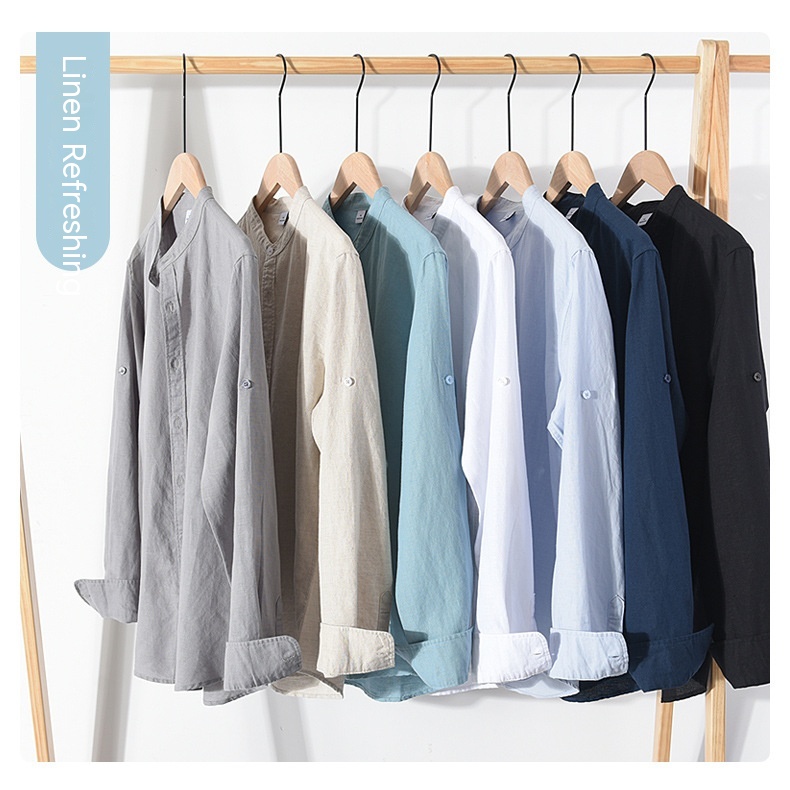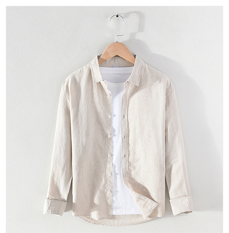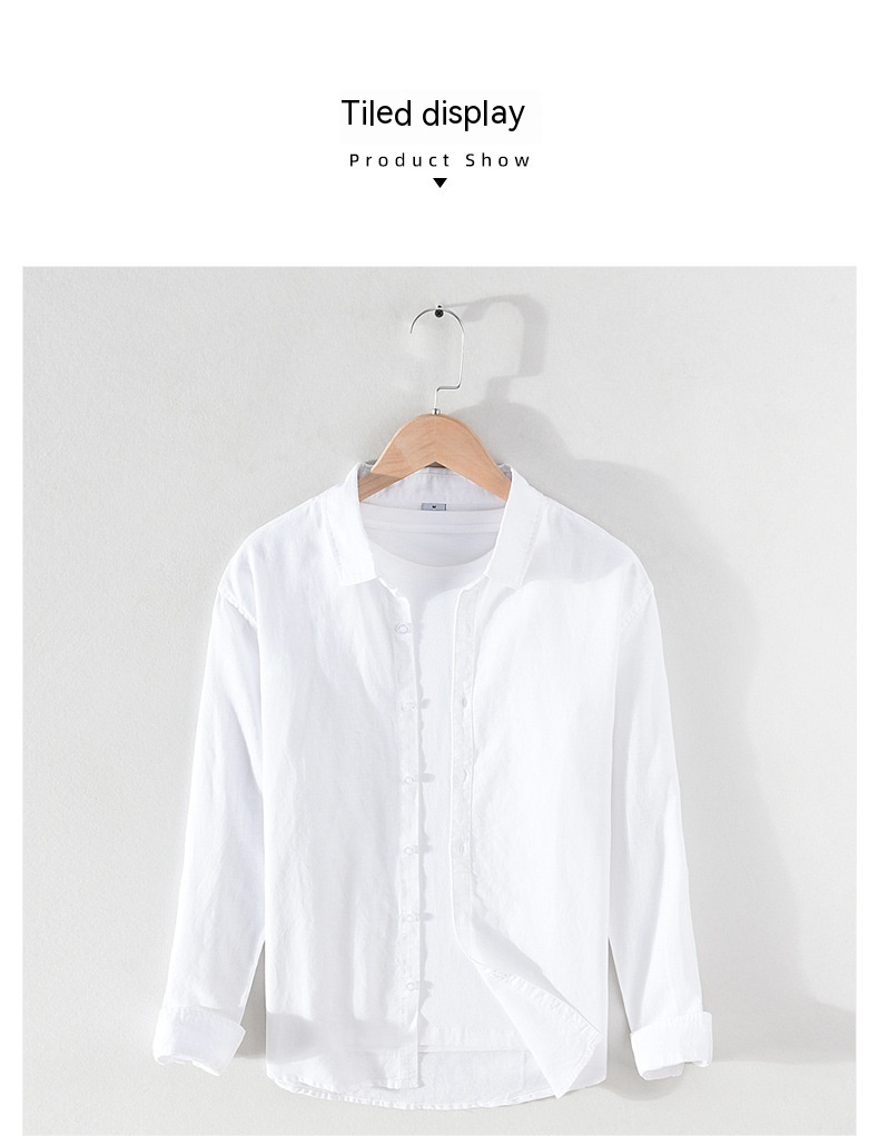 Spring And Summer Men's Linen White Long-sleeved Shirt