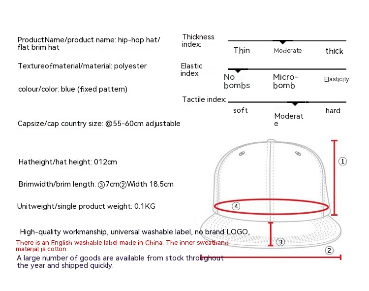 Style: Hip hop hat/flat brimmed hat/baseball cap