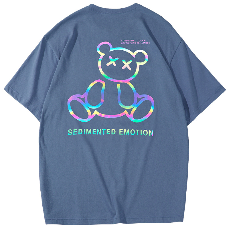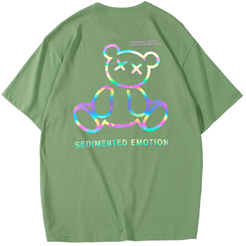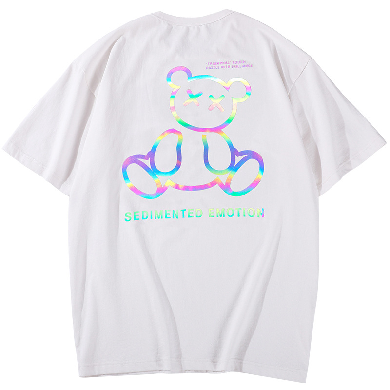 Spring And Summer New Couple T-shirt Women Loose Colorful Bear Reflective Short Sleeves