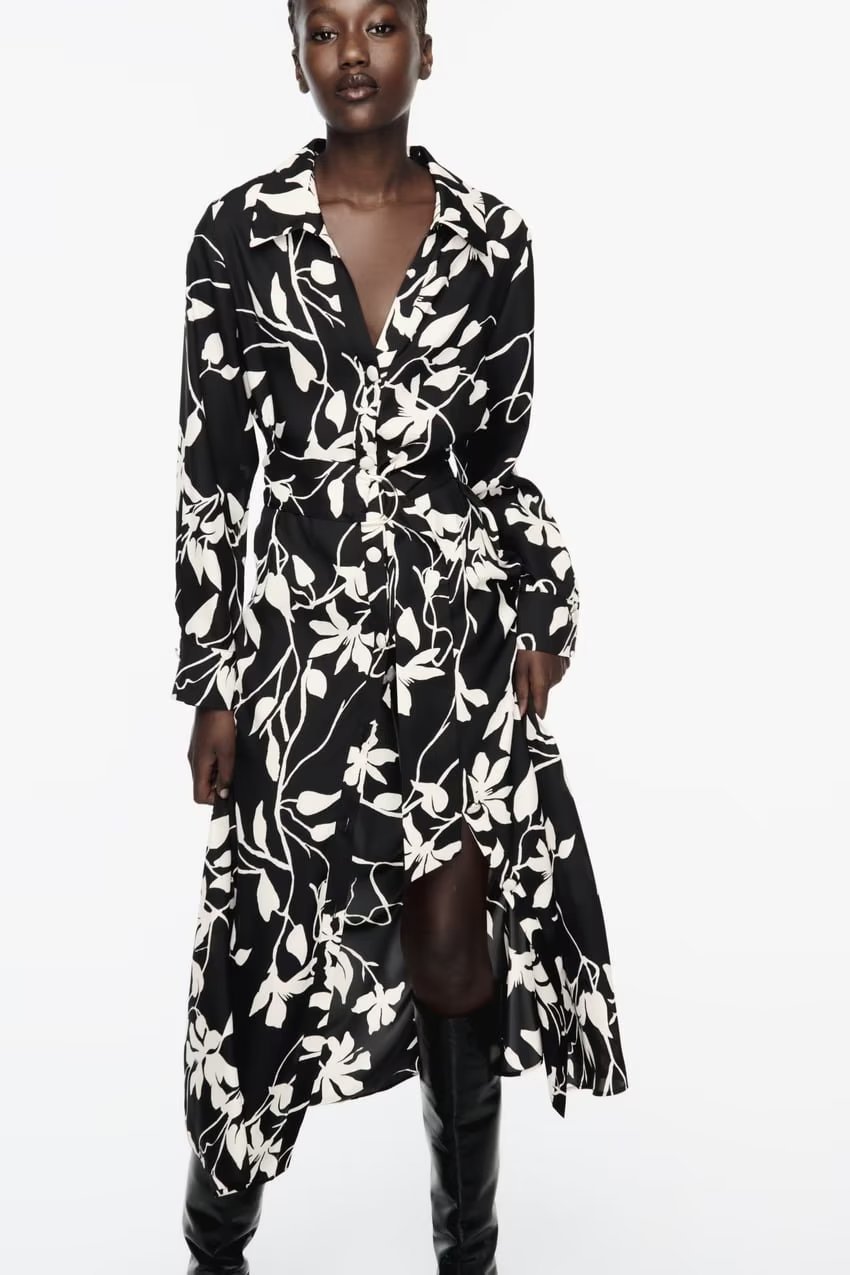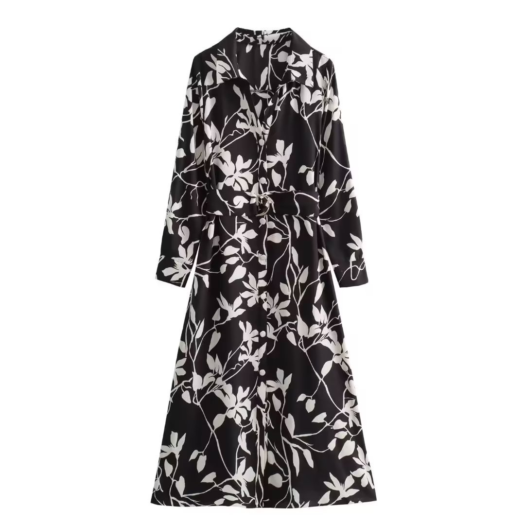Spring And Summer New European Station Flower Print Shirt Dress Suit