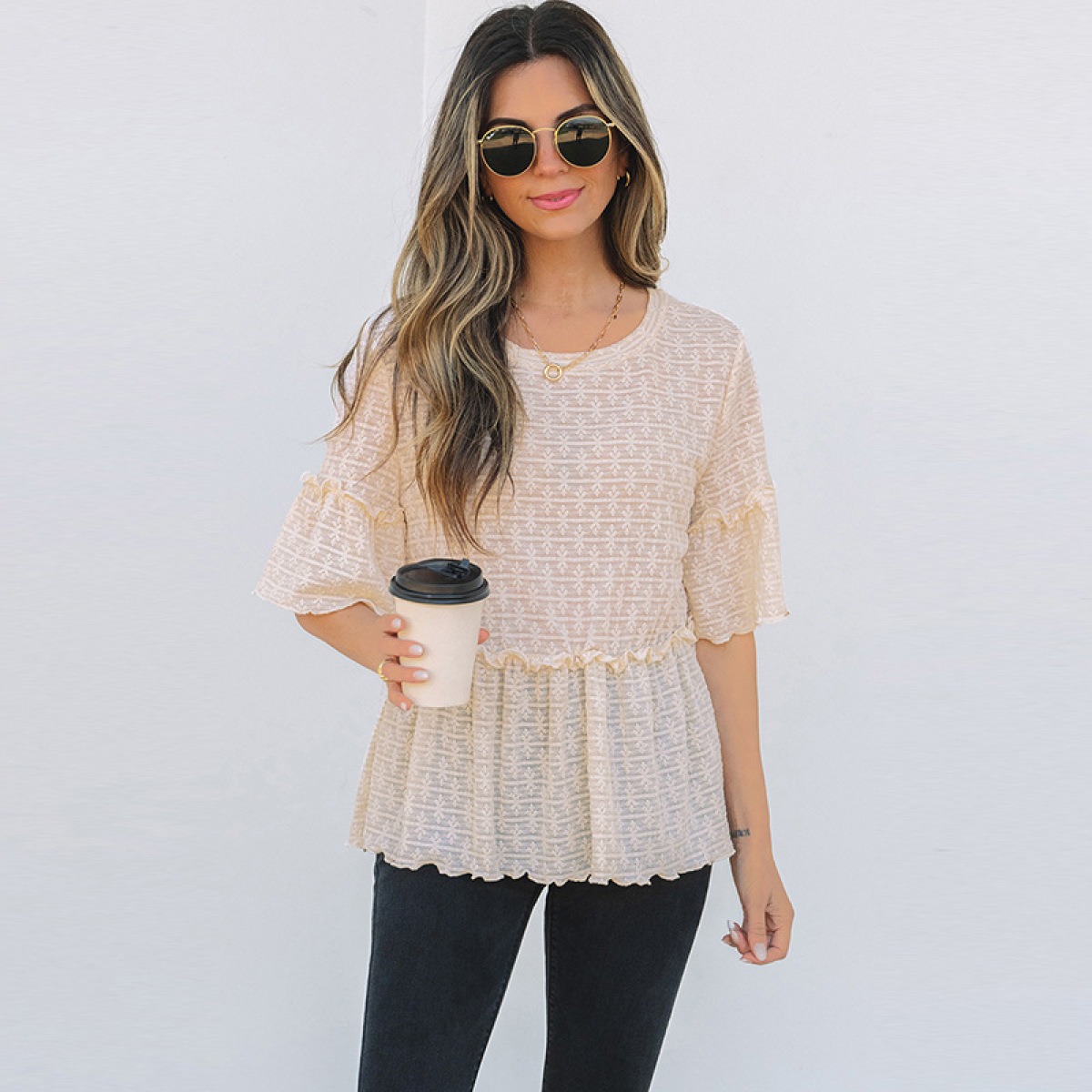 Spring And Summer New Solid Color Pullover Round Neck Short Sleeve Chiffon Shirt