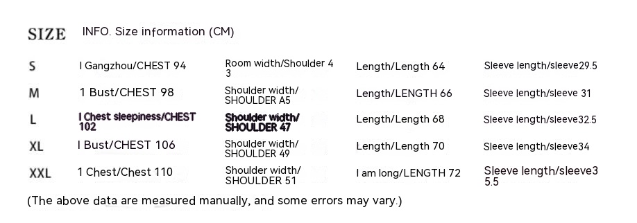 Note: 1. Asian sizes are 1 to 2 sizes smaller than European and American people. Choose the larger size if your size between two sizes. Please allow 2-3cm differences due to manual measurement. 2. Please check the size chart carefully before you buy the item, if you don't know how to choose size, please contact our customer service. 3.As you know, the different computers display colors differently, the color of the actual item may vary slightly from the following images.