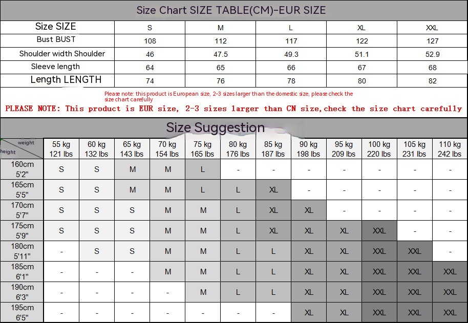 1. Asian sizes are 1 to 2 sizes smaller than European and American people. Choose the larger size if your size between two sizes. Please allow 2-3cm differences due to manual measurement. 2. Please check the size chart carefully before you buy the item, if you don't know how to choose size, please contact our customer service. 3.As you know, the different computers display colors differently, the color of the actual item may vary slightly from the following images.