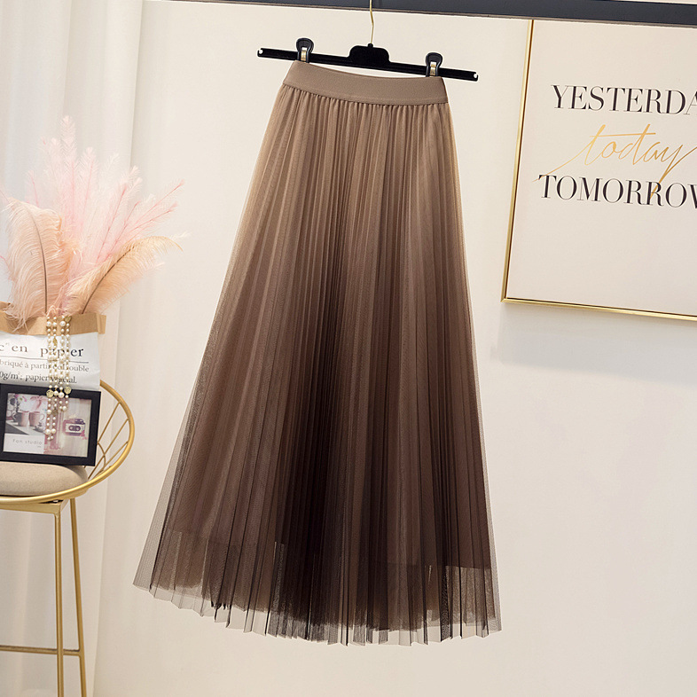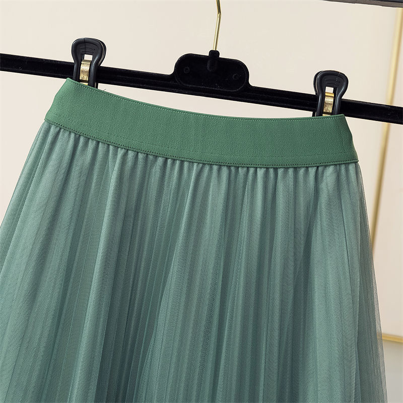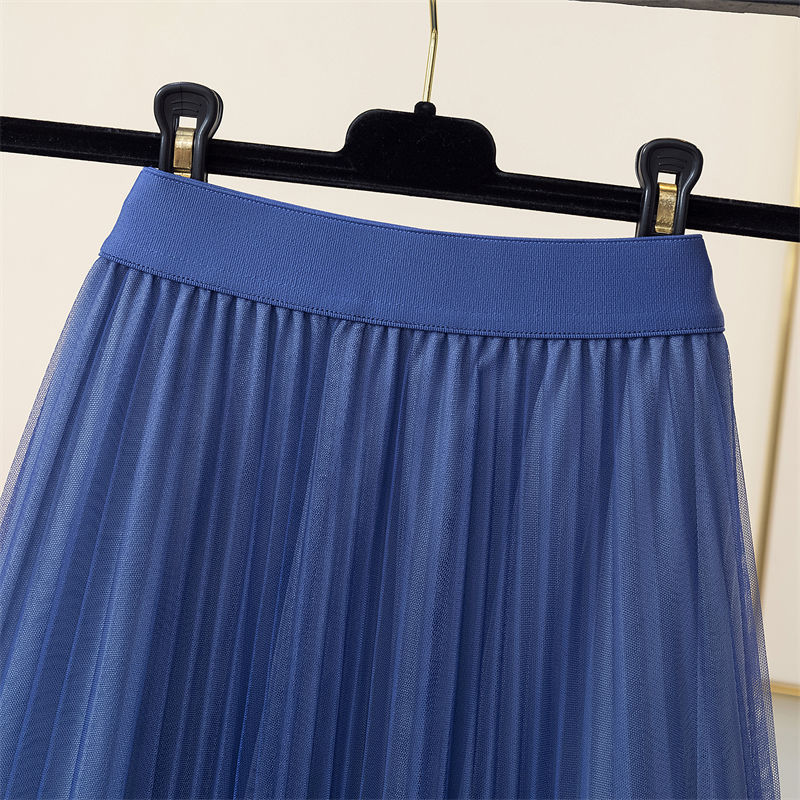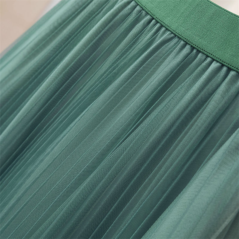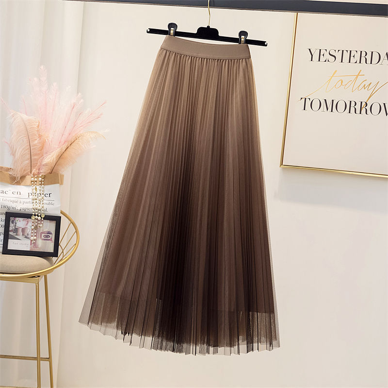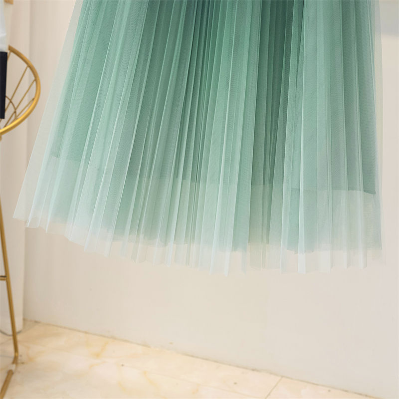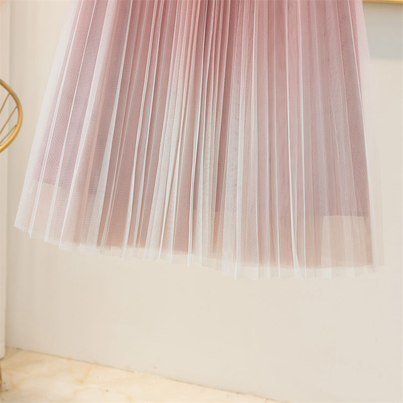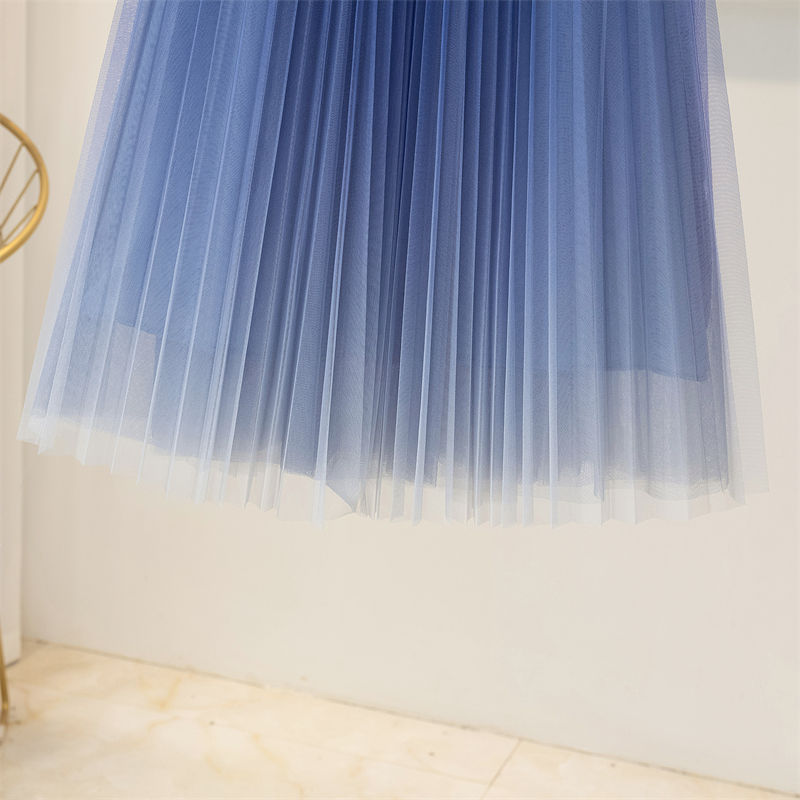 Spring And Summer Starry Sky Gradient Mesh Women's Mid-length Slimming Pleated Skirt