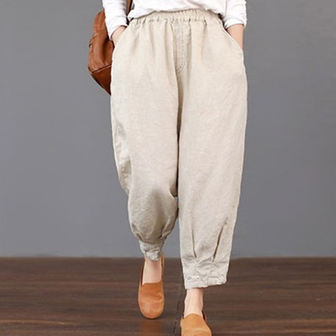 Spring And Summer Women's Casual Solid Color Cotton Linen Elastic Women's Pants
