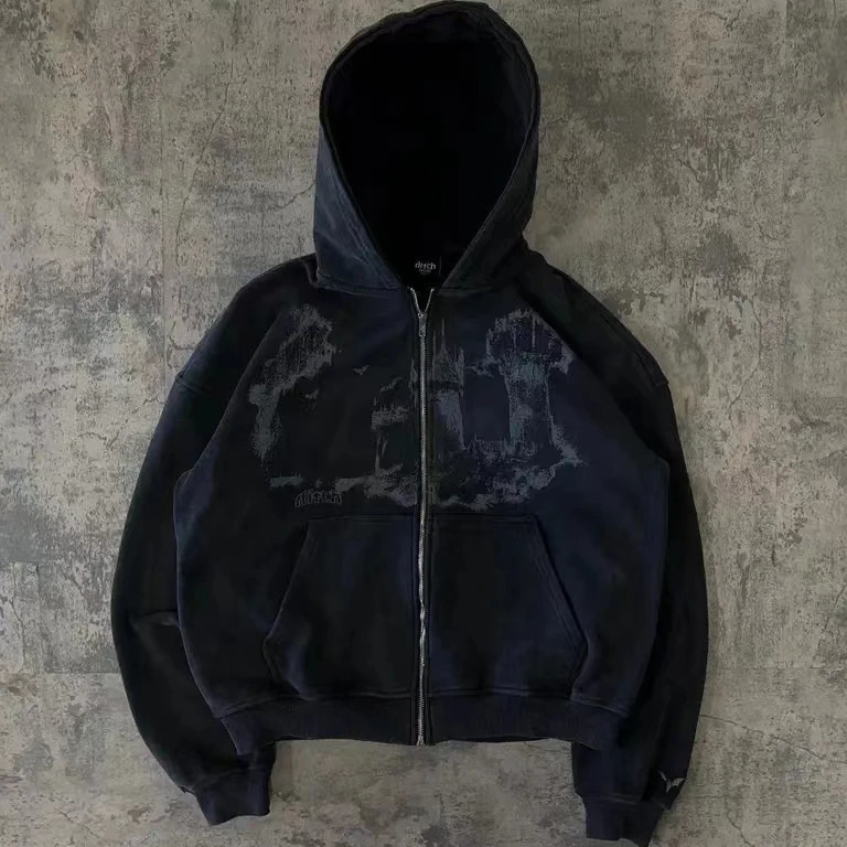 Spring Autumn Hooded Sports Cardigan With Zipper And Graffiti Print