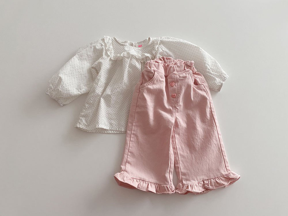 Spring Baby Girls' Retro Wooden Ear Casual Lace Wide-leg Pants Children Fashion Pants