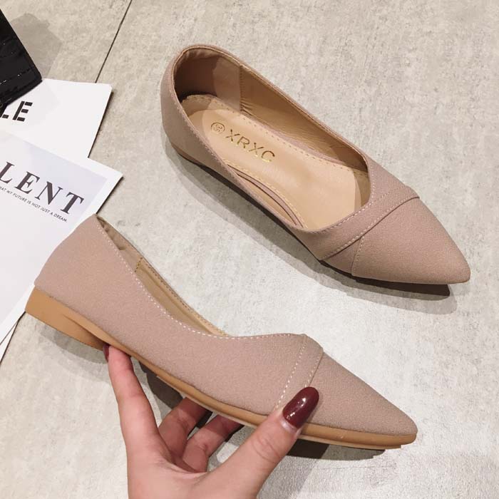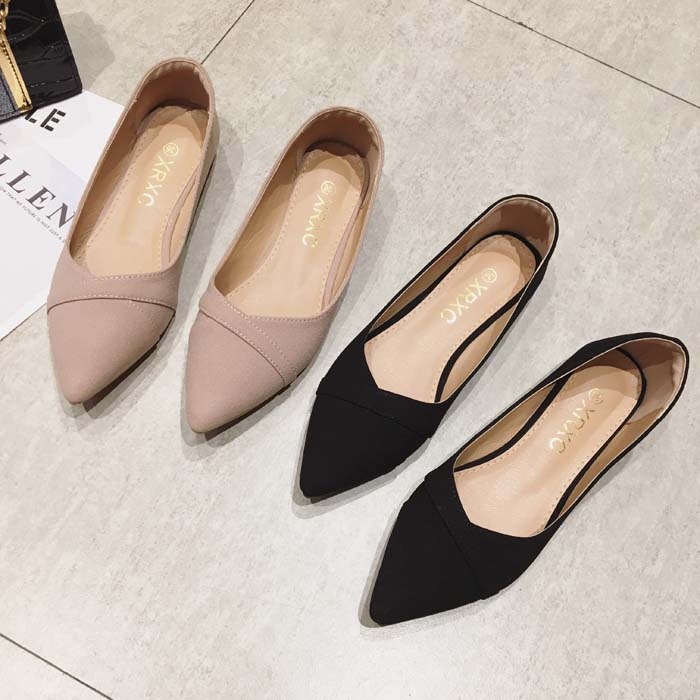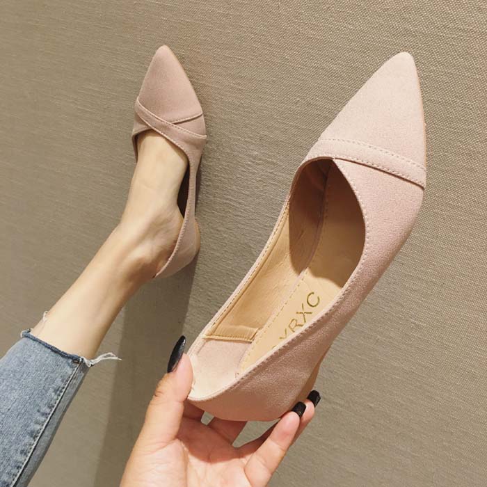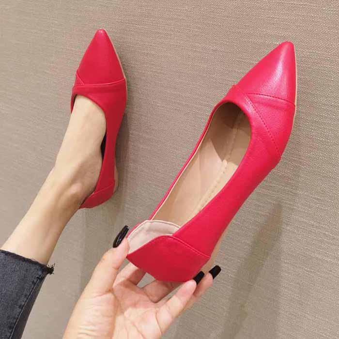The model tries it on. It's a little too big. It's suggested to be small for thin feet, and normal size for wide and fat feet (for reference only)