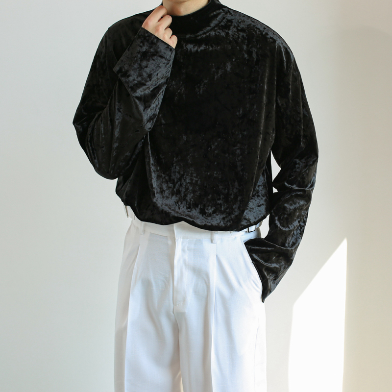 Spring Men's Half Turtleneck Gold Velvet Bottoming Shirt T-Shirt