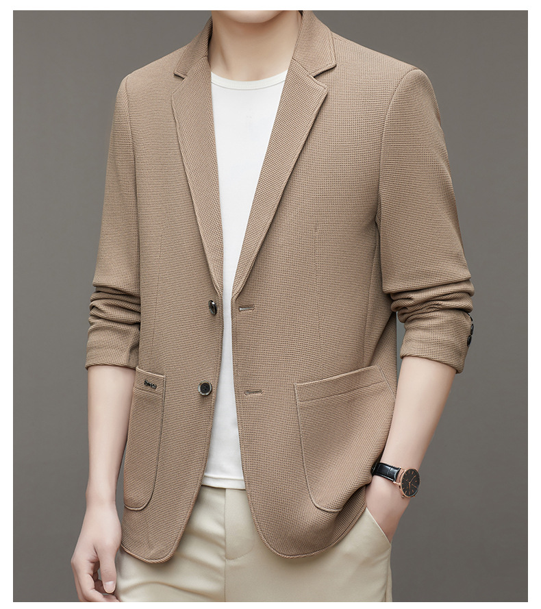 Spring Men's Knitted Waffle Casual Suit Jacket