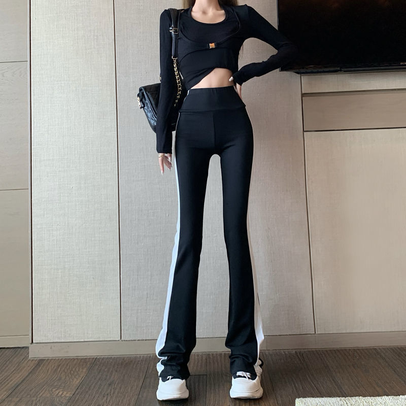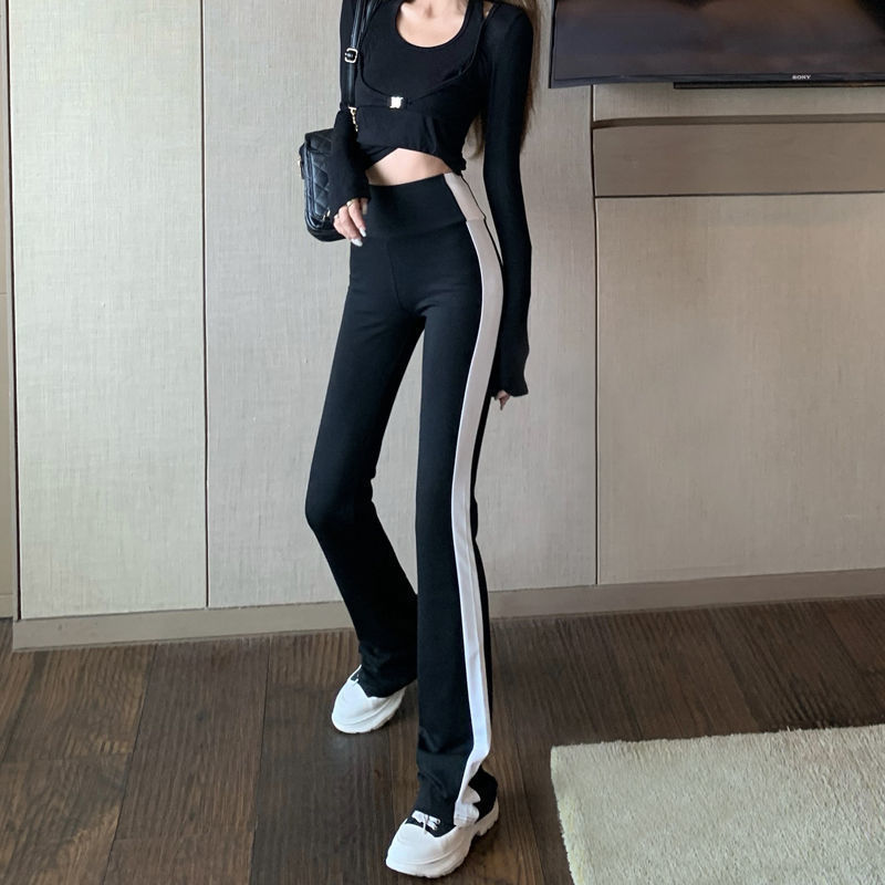 Spring Micro-lab High Waist Skinny Straight Stripes Collision Color Casual Pants Female