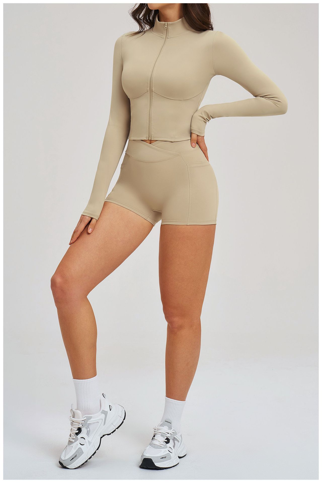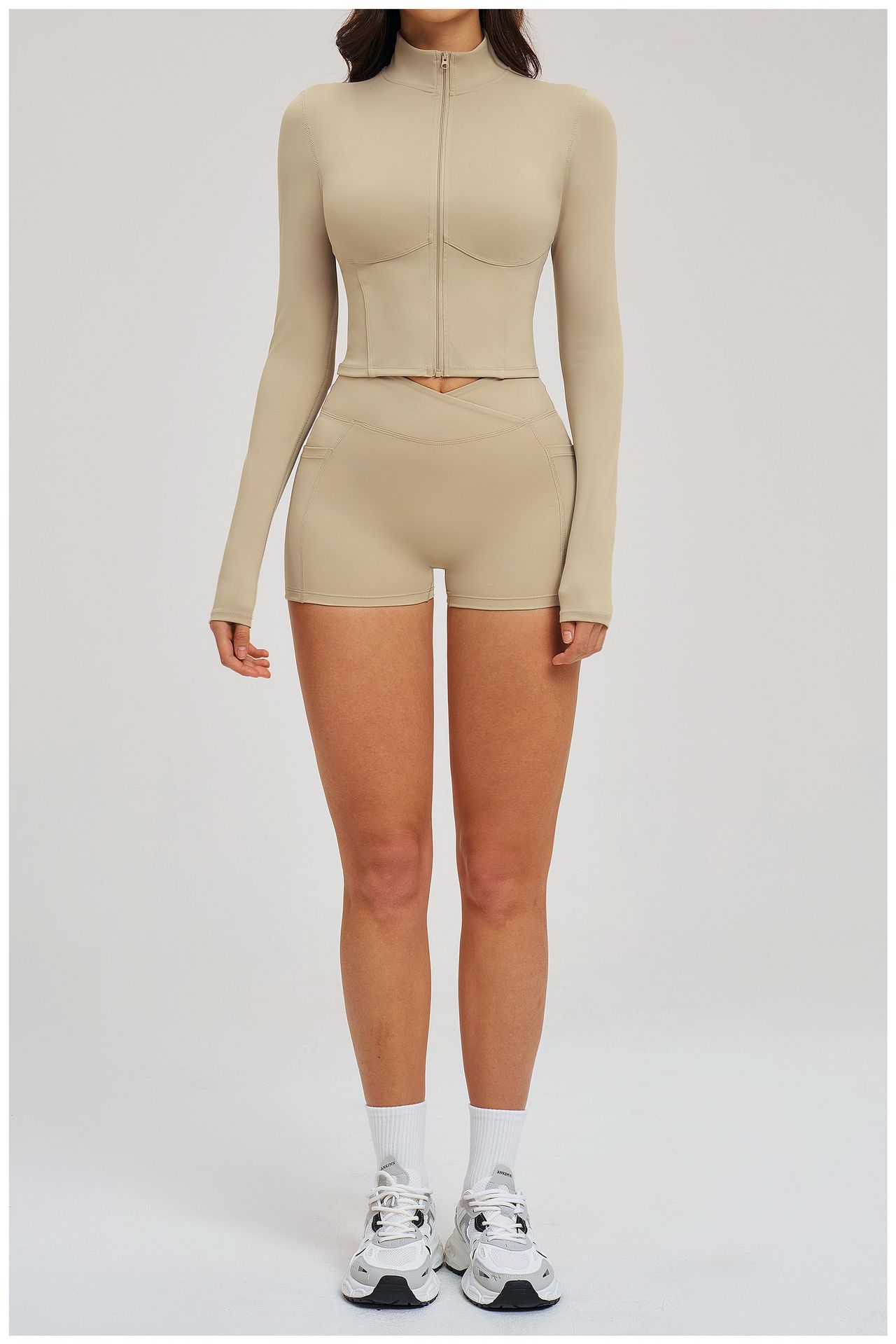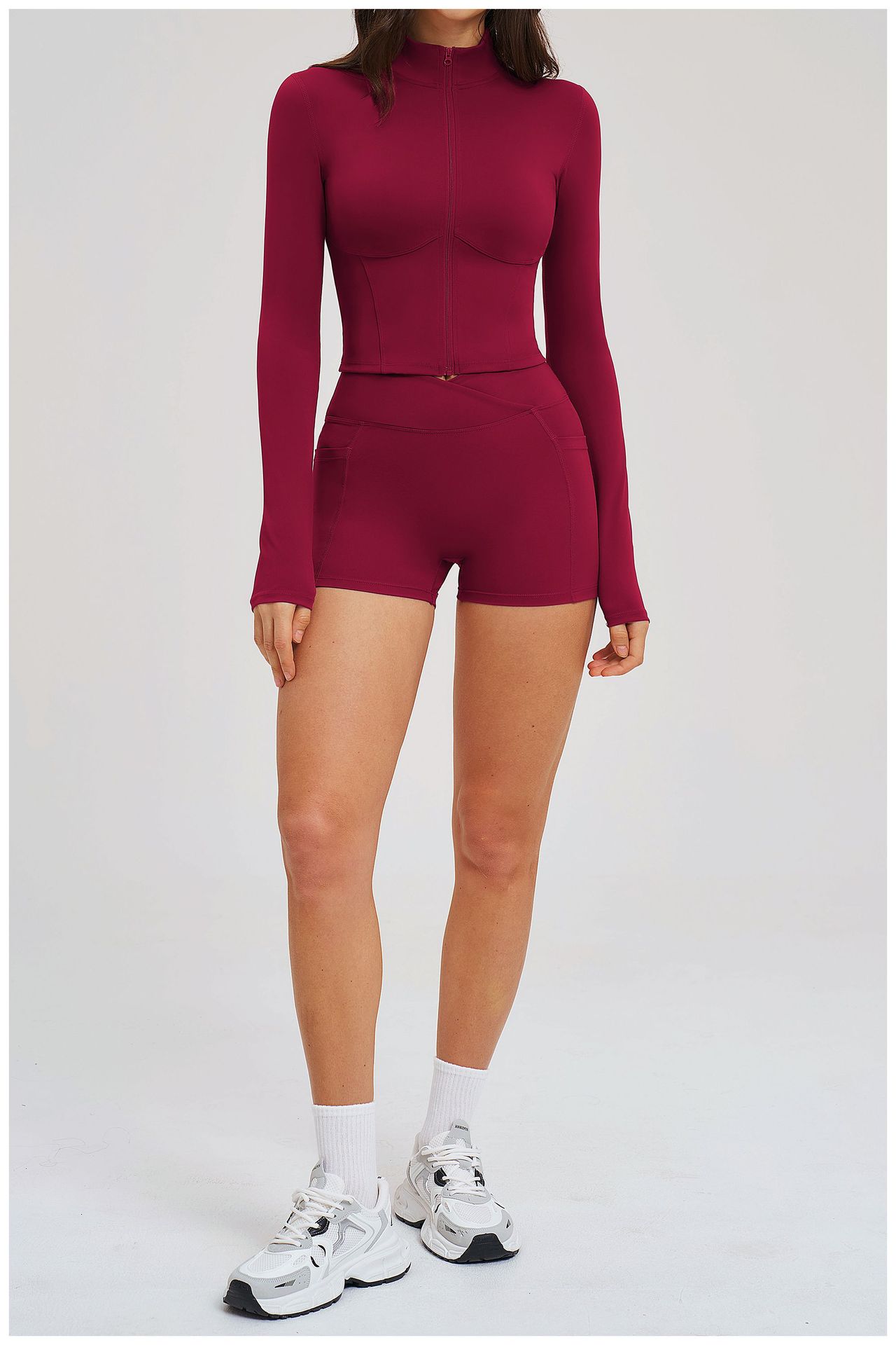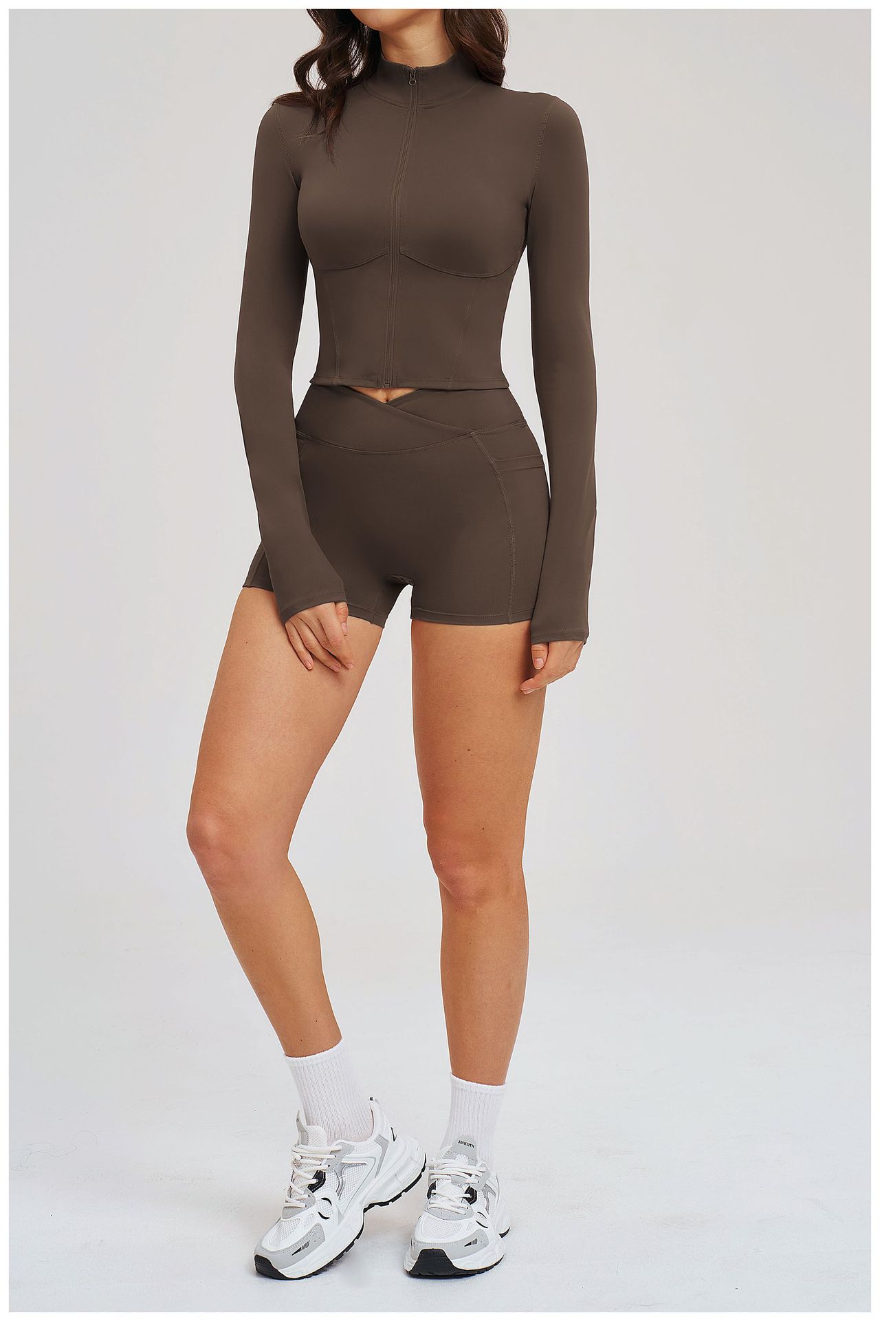 Colors: 2539 Jacket + 2030 Shorts — High-End Black, 2539 Jacket + 2030 Shorts — Coffee Brown, 2539 Jacket + 2030 Shorts — Bean Paste Green, 2539 Jacket + 2030 Shorts — Cherry Red, 2539 Jacket + 2030 Shorts — Light Camel