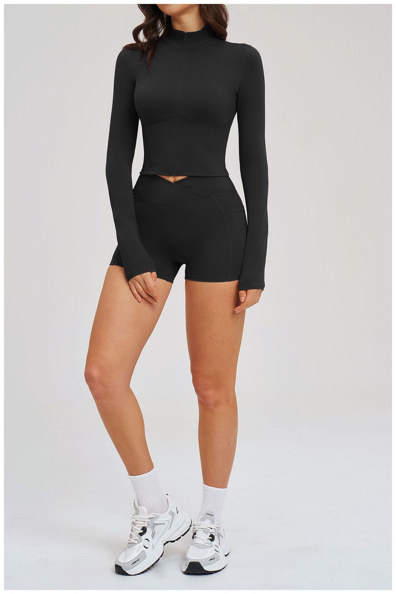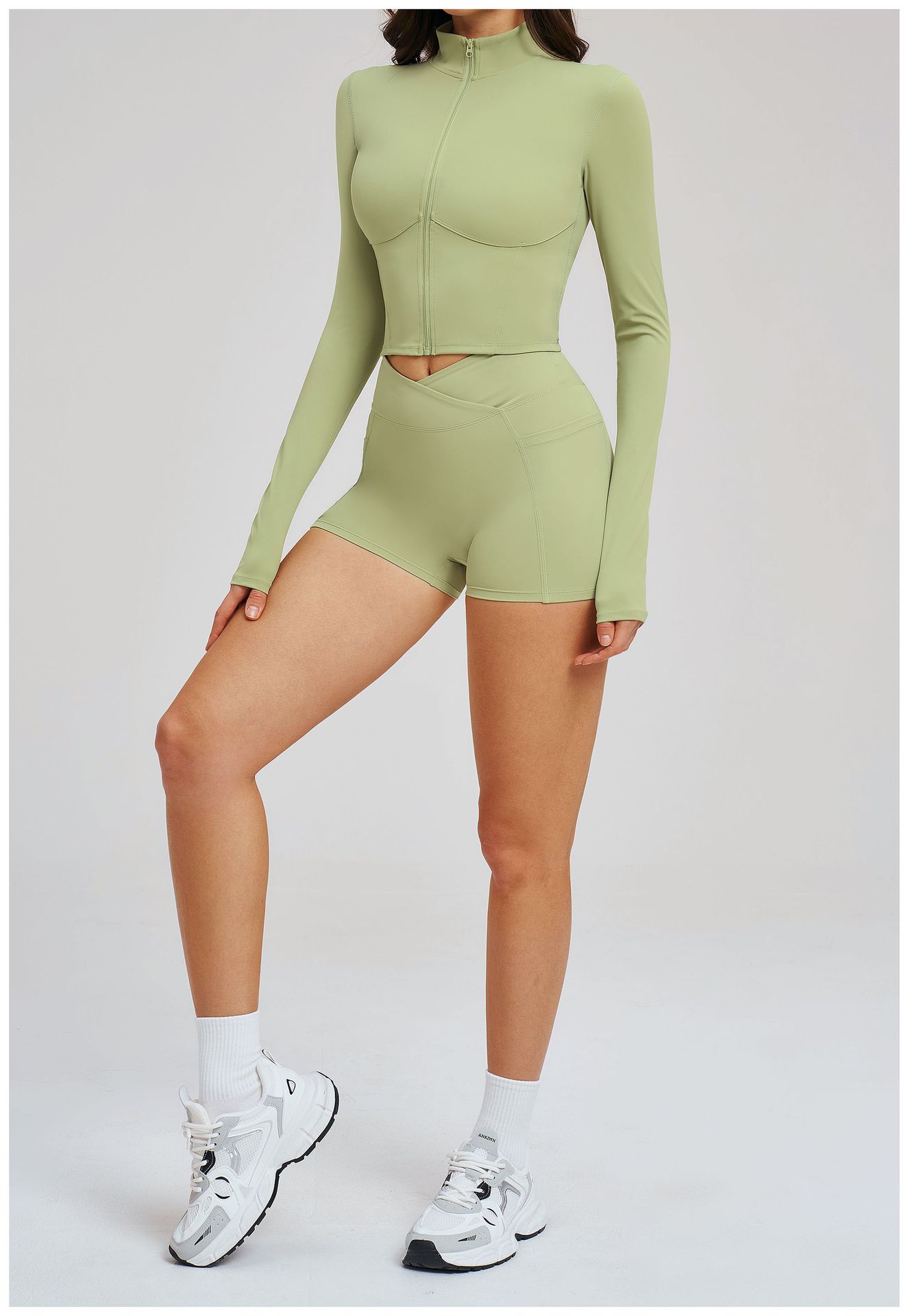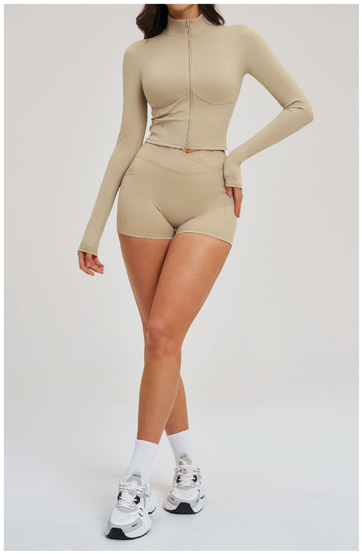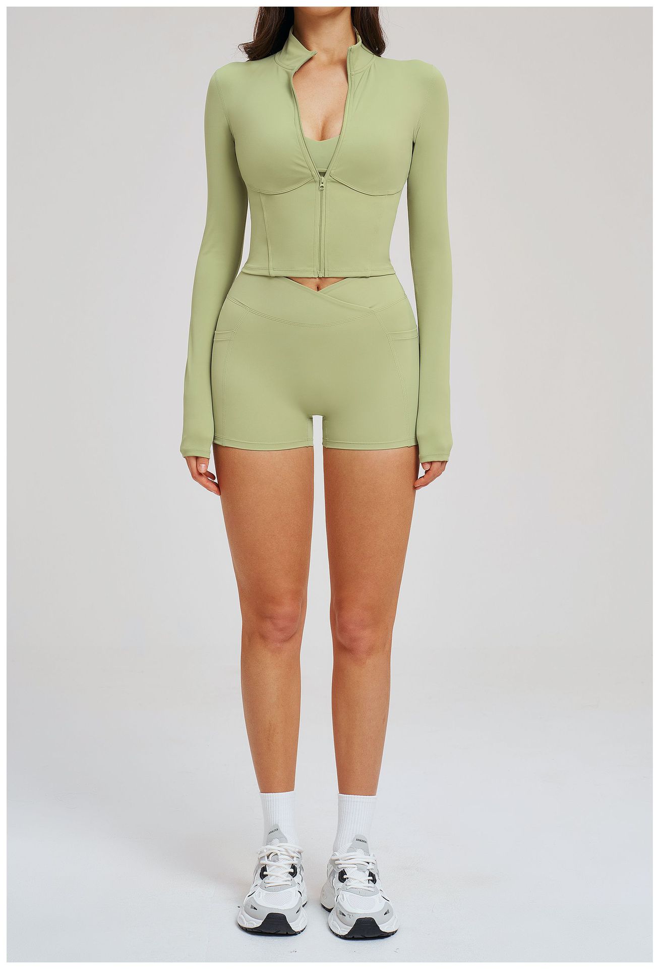 Colors: 2539 Jacket + 2030 Shorts — High-End Black, 2539 Jacket + 2030 Shorts — Coffee Brown, 2539 Jacket + 2030 Shorts — Bean Paste Green, 2539 Jacket + 2030 Shorts — Cherry Red, 2539 Jacket + 2030 Shorts — Light Camel