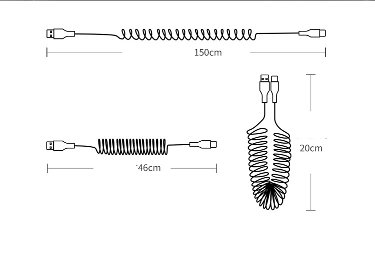 Models: Apple spring wire 1 m, Apple spring wire 1.5 m, Android spring wire 1 m, Android spring wire 1.5 m,5A spring wire 1 m,5A spring wire 1.5 m