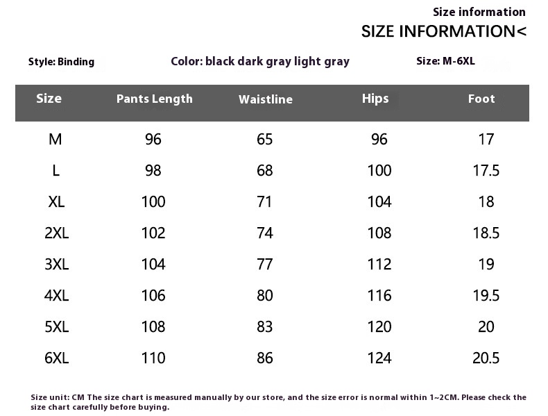 Color: Black tight trousers, beam foot dark gray, beam foot light gray, flat foot black, flat foot dark gray, flat foot light gray, 6801 Black, 6801 dark gray, 6801 light gray