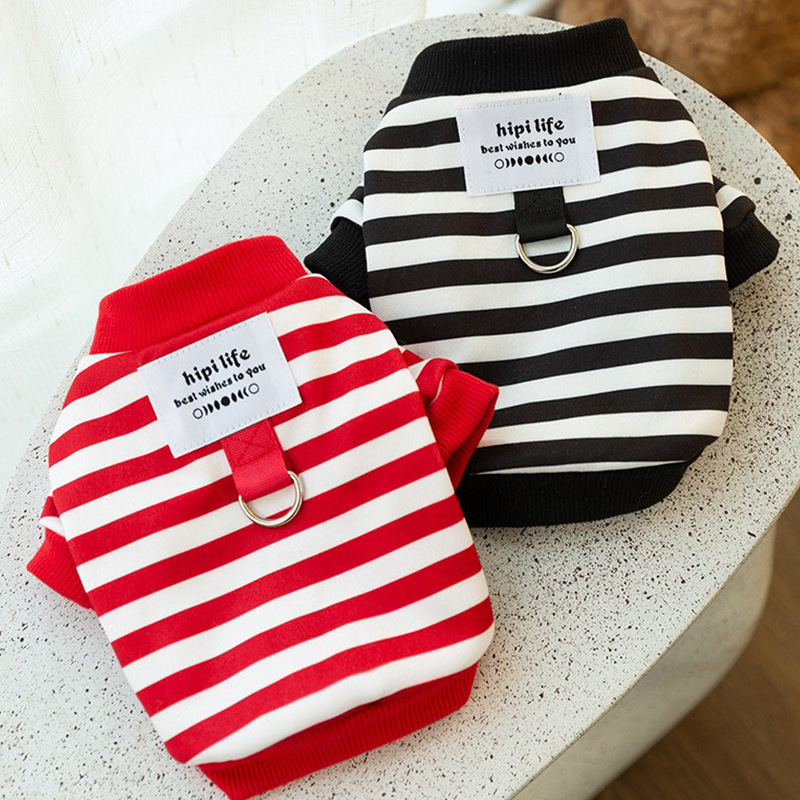 Spring Thin Velvet Puppy Clothes Simple Striped Traction Sweater
