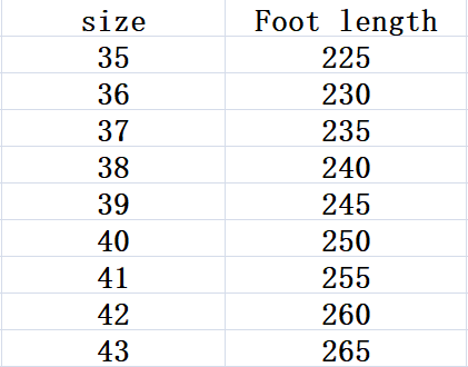 Size: 35, 36, 37, 38, 39, 40, 41, 42, 43