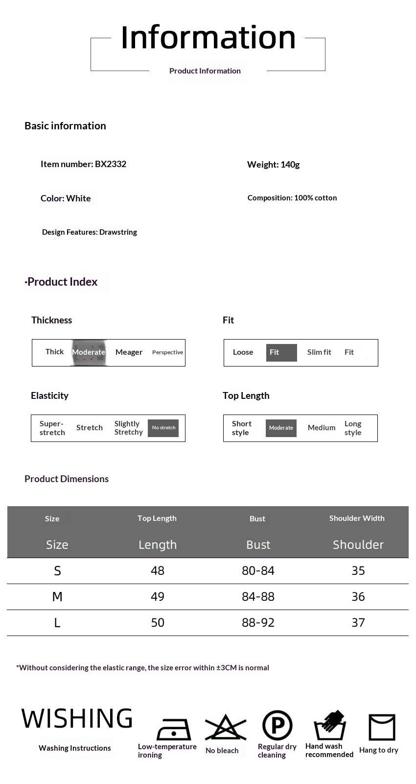 Product information: