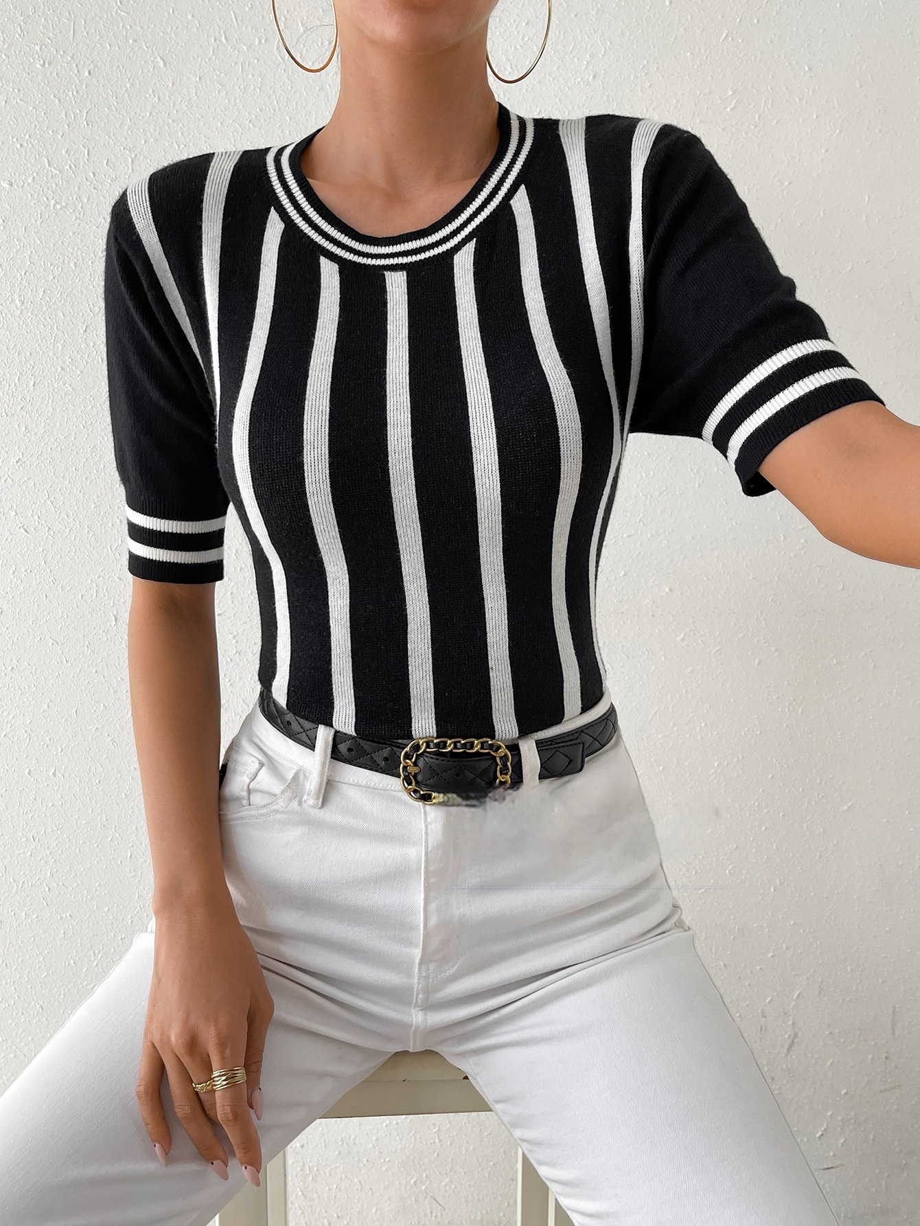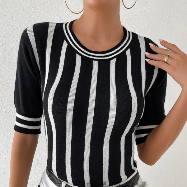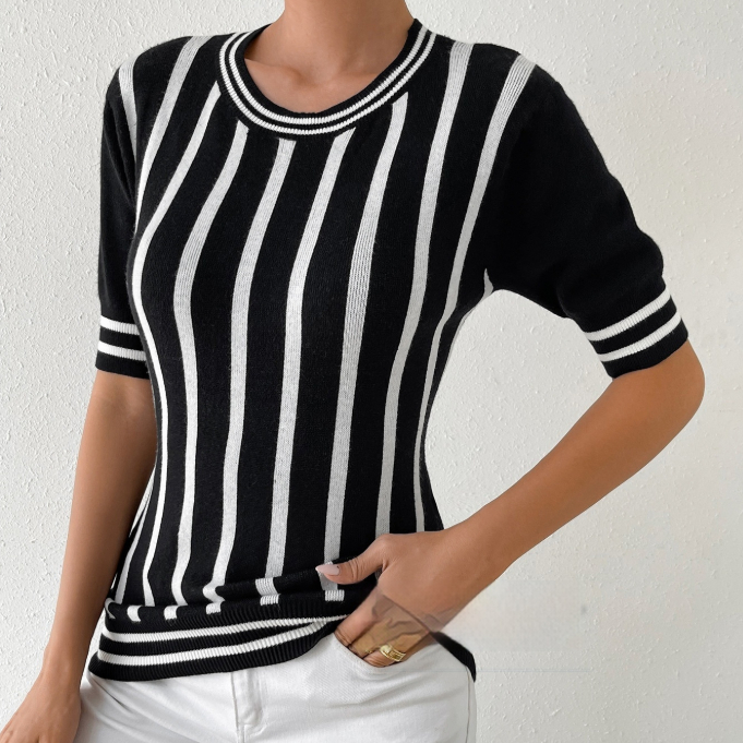SpringSummer New Womens Striped Short-Sleeve Fashion Top Knit Sweater