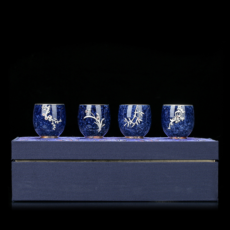 Q: The whole set of four blue cups [Silver Plum, Orchid, Bamboo and Chrysanthemum]