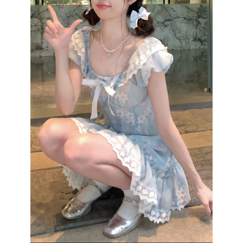 Square Collar Flying Sleeve Summer New Design Dress