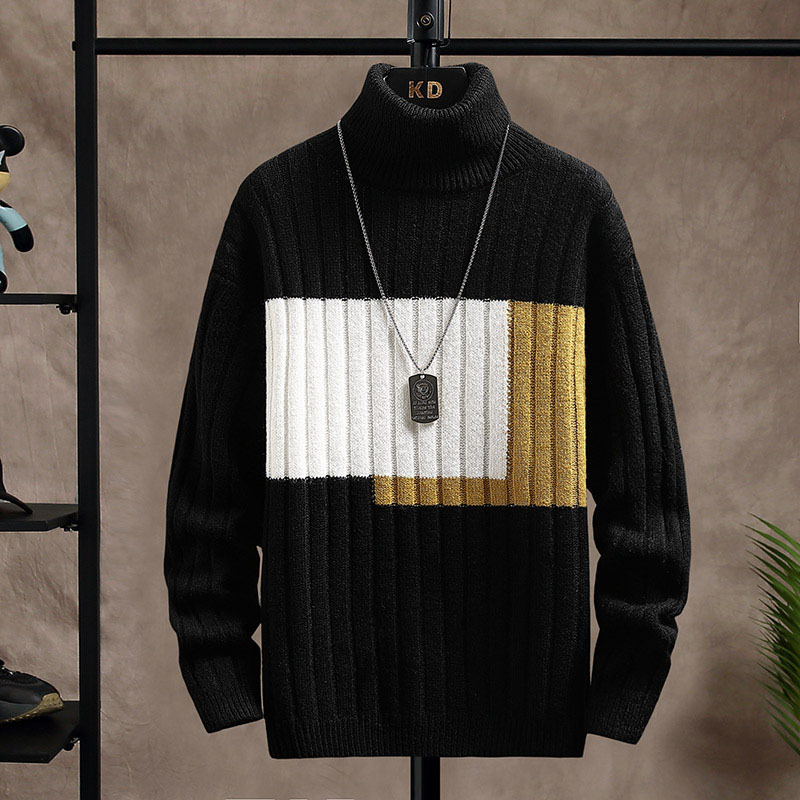 Square Color Stitching Thickened Turtleneck Men's Knitted Sweater