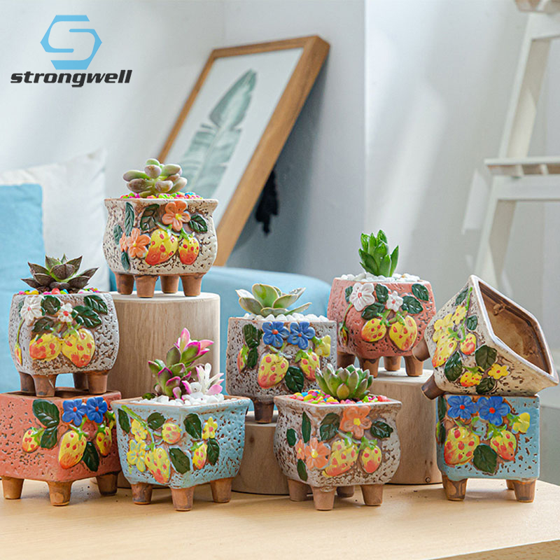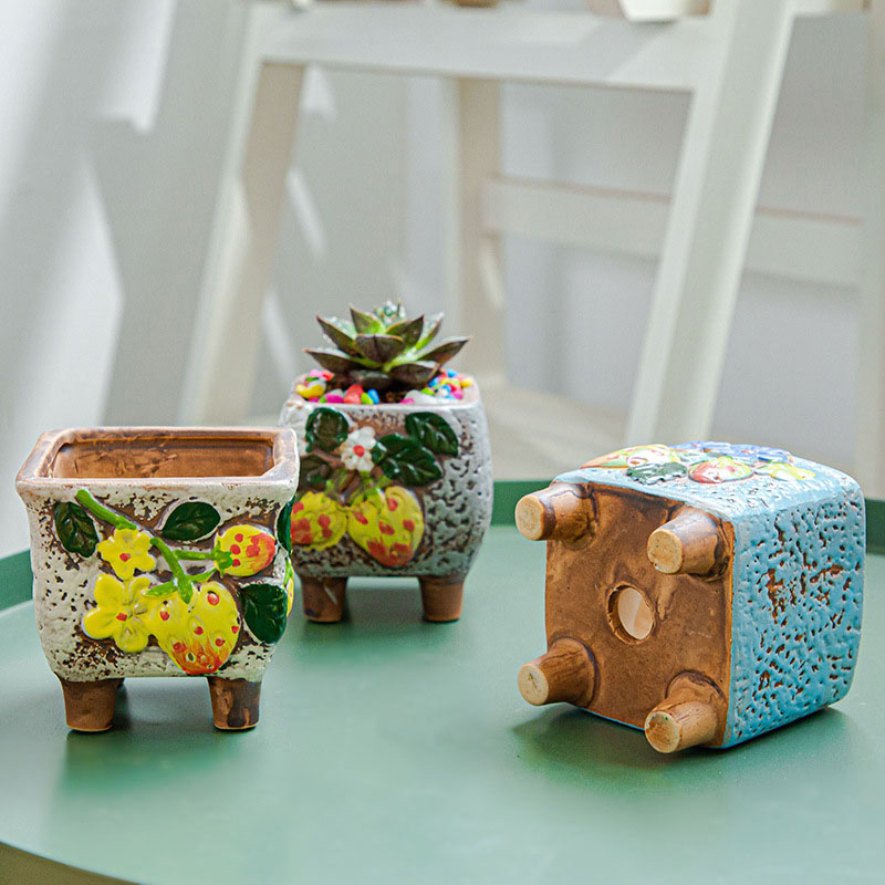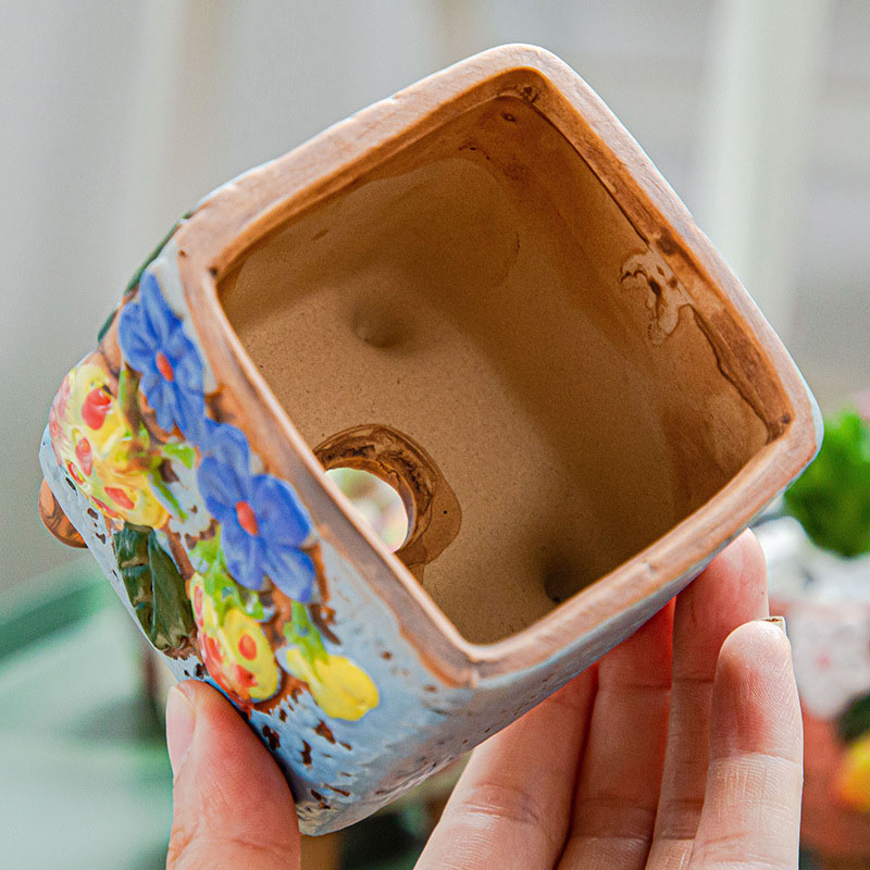 Square Creative Cute Cartoon Ceramic Succulent Pot
