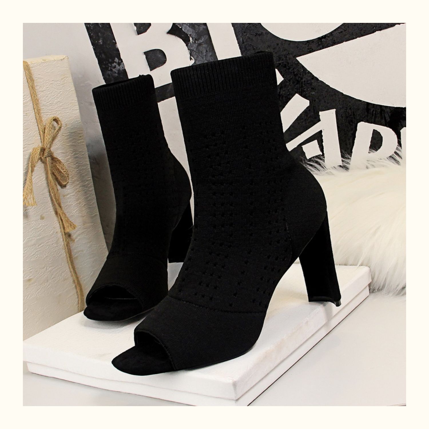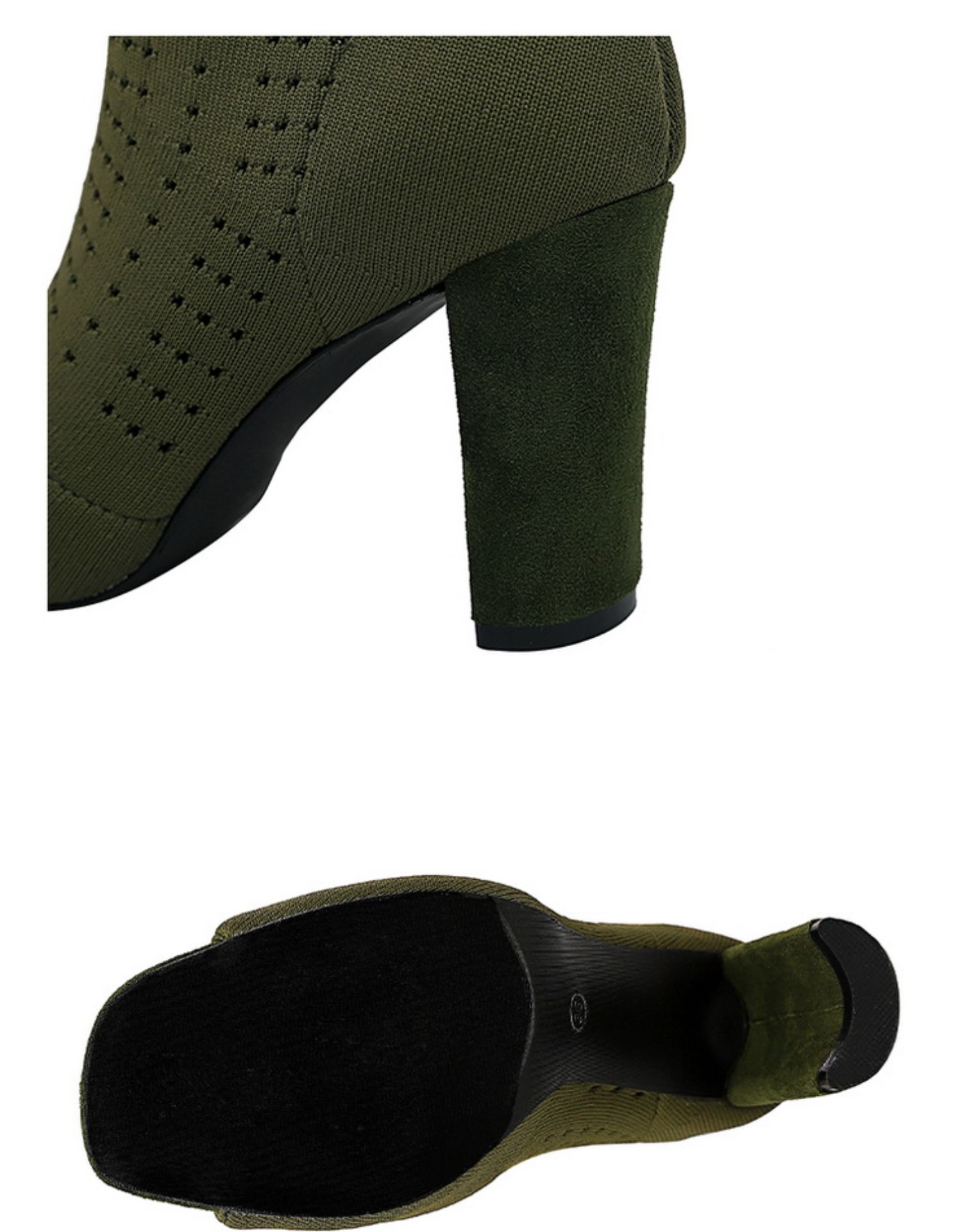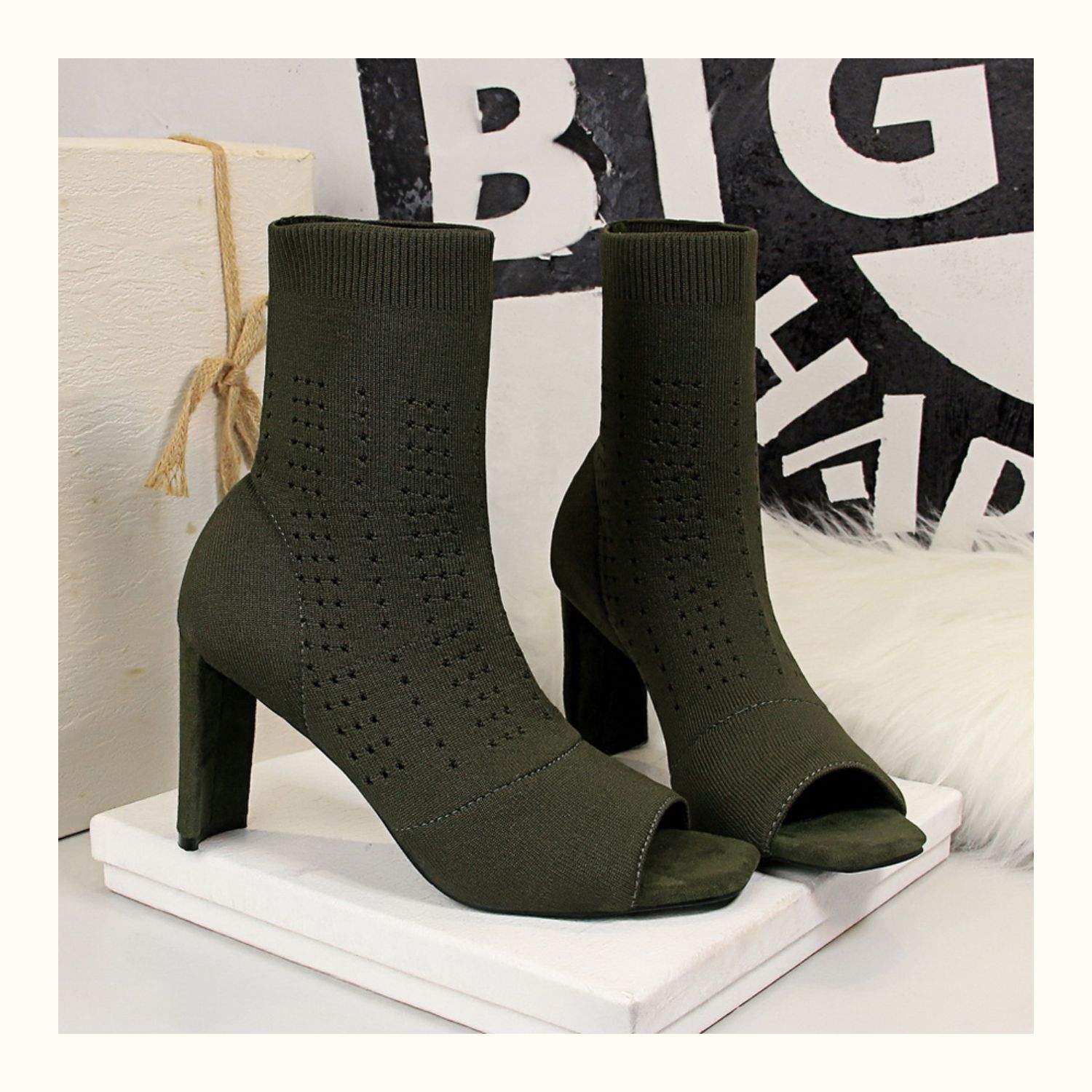 Square Fish Mouth Toe Skinny Middle Tube Knitted Ankle Boots