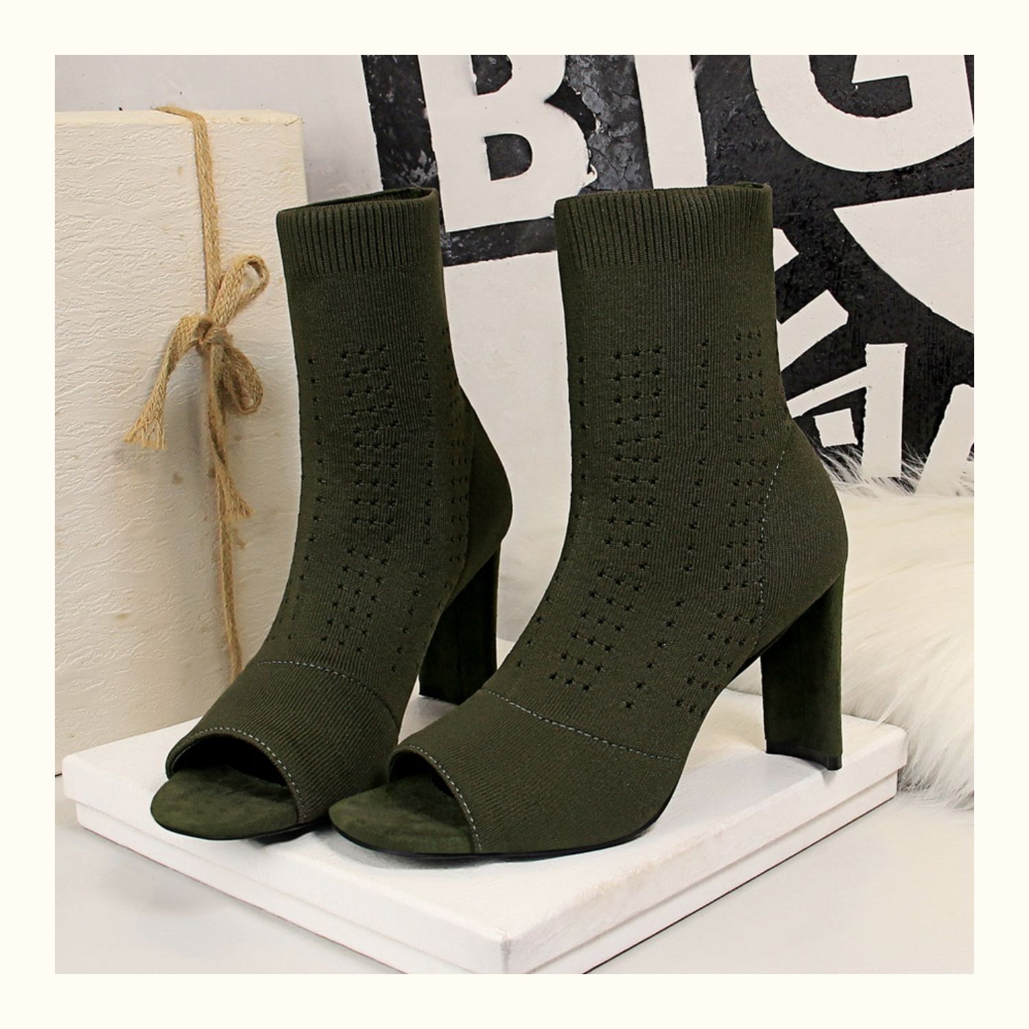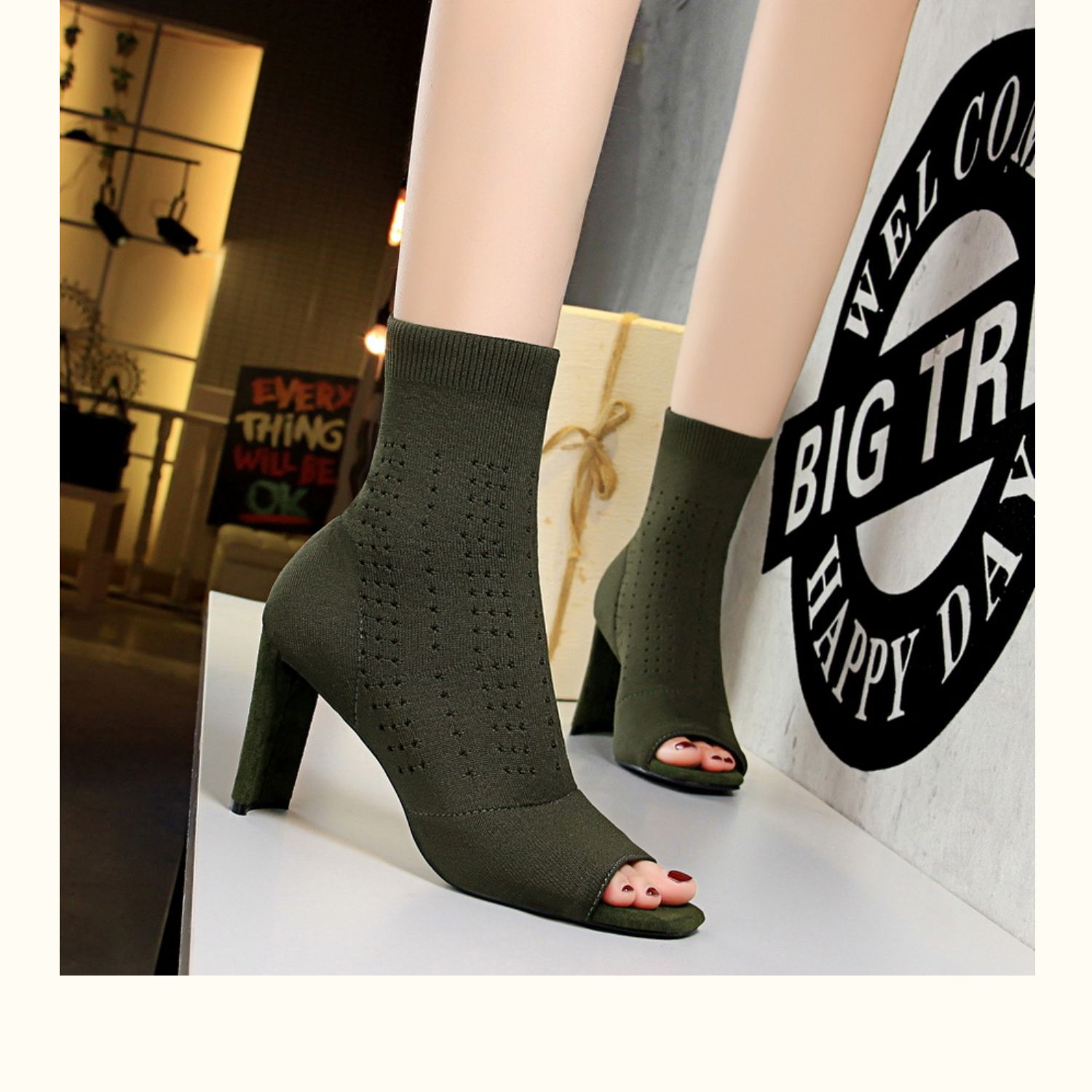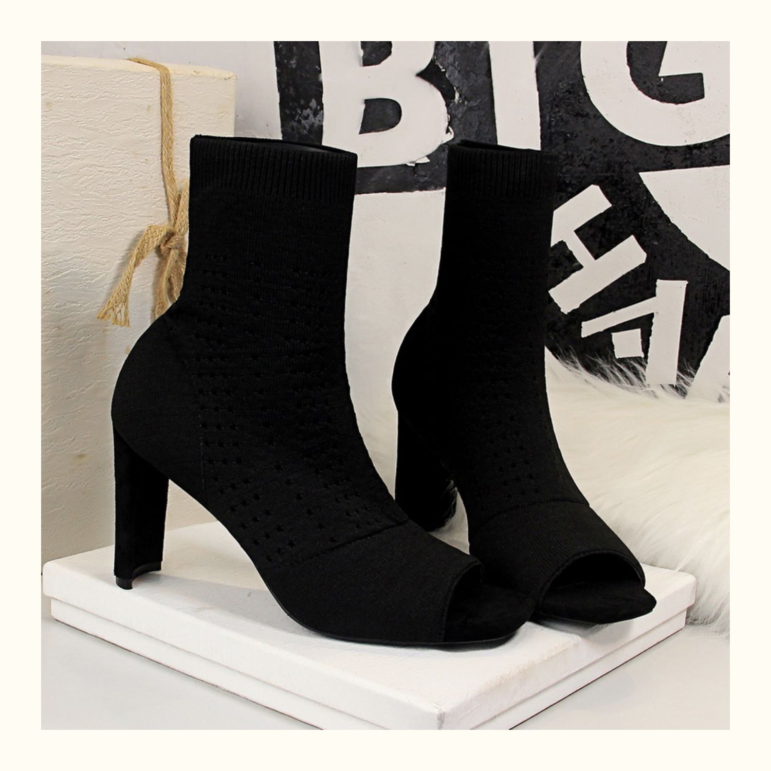 Square Fish Mouth Toe Skinny Middle Tube Knitted Ankle Boots