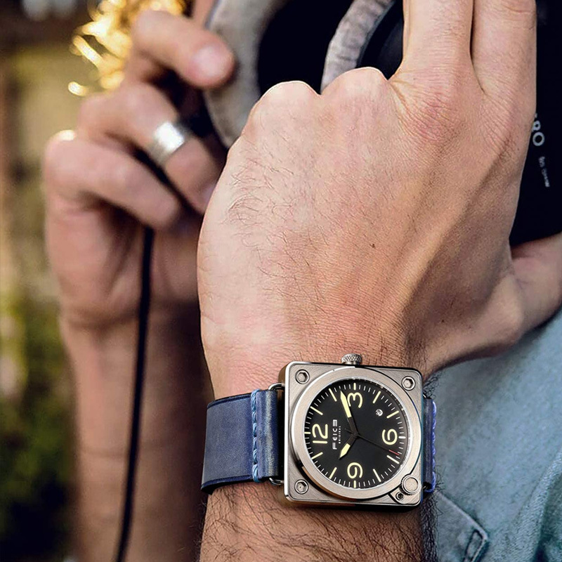 Color: silver case black face gray blue ribbon, silver case black face camouflage belt