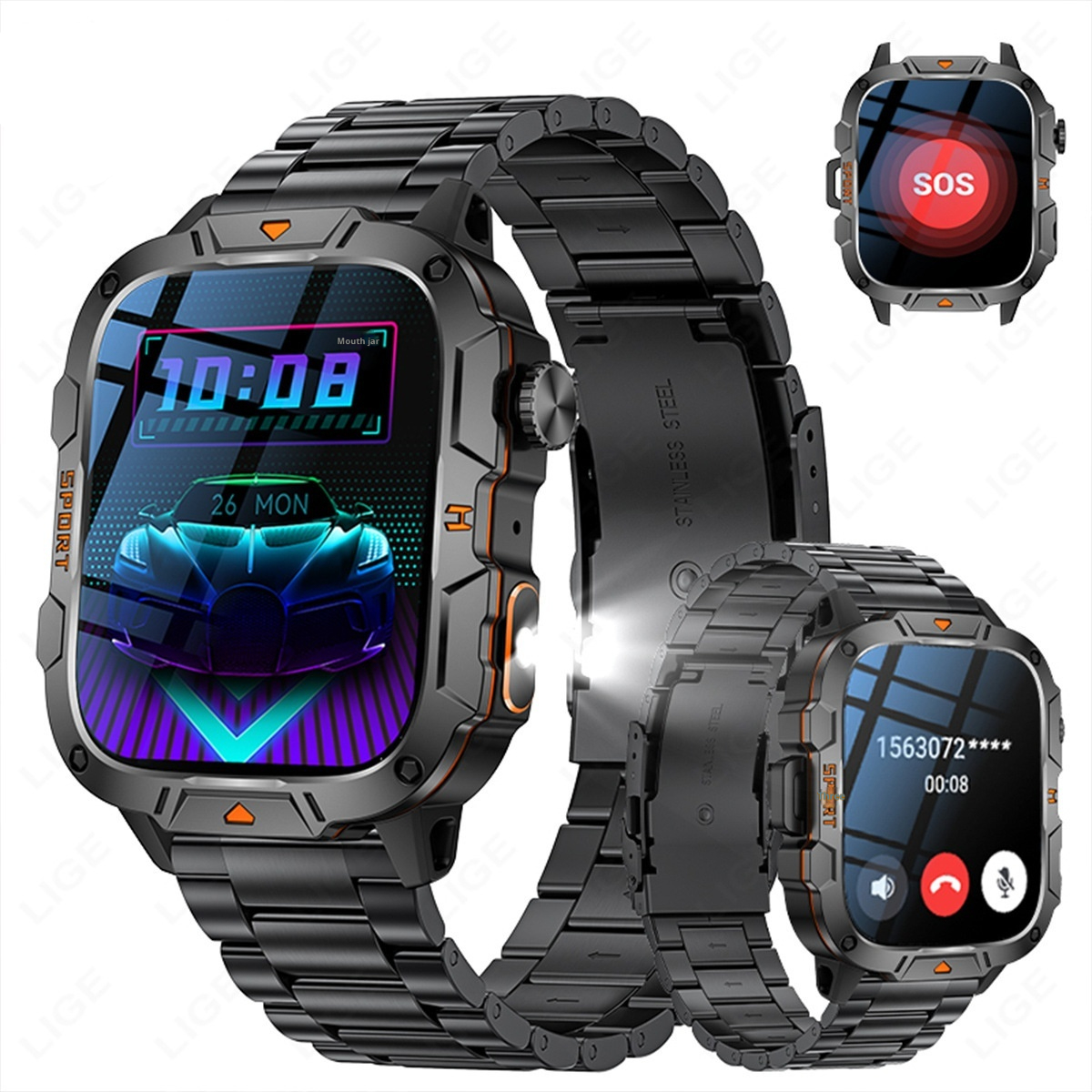 Color: Black silicone band, orange silicone band, Blue silicone band, beige silicone band, black mesh belt black silicone band, black steel belt black silicone band