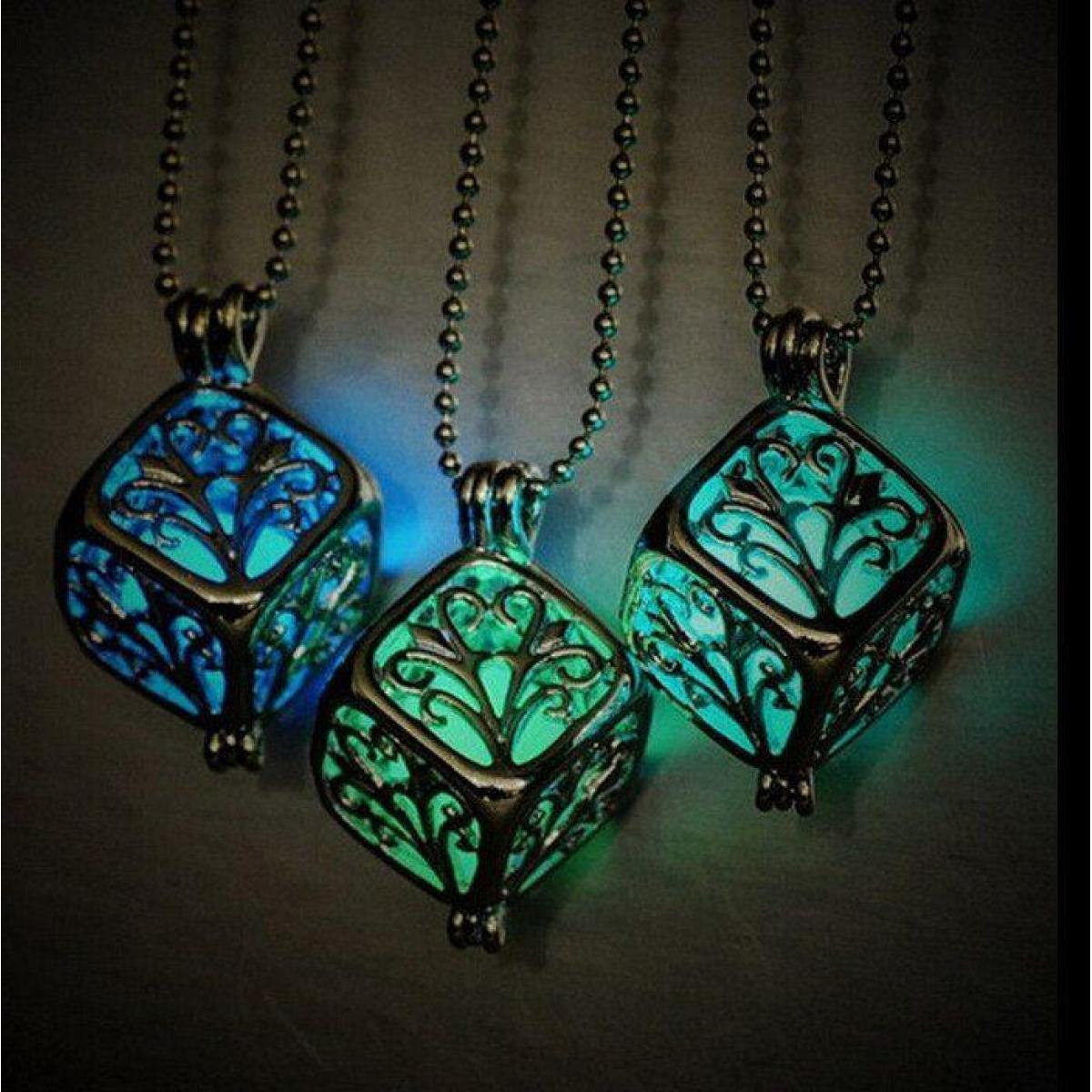 Square Life Tree Hollow Night Glowing Necklace Necklace Life Tree Pendant Necklace