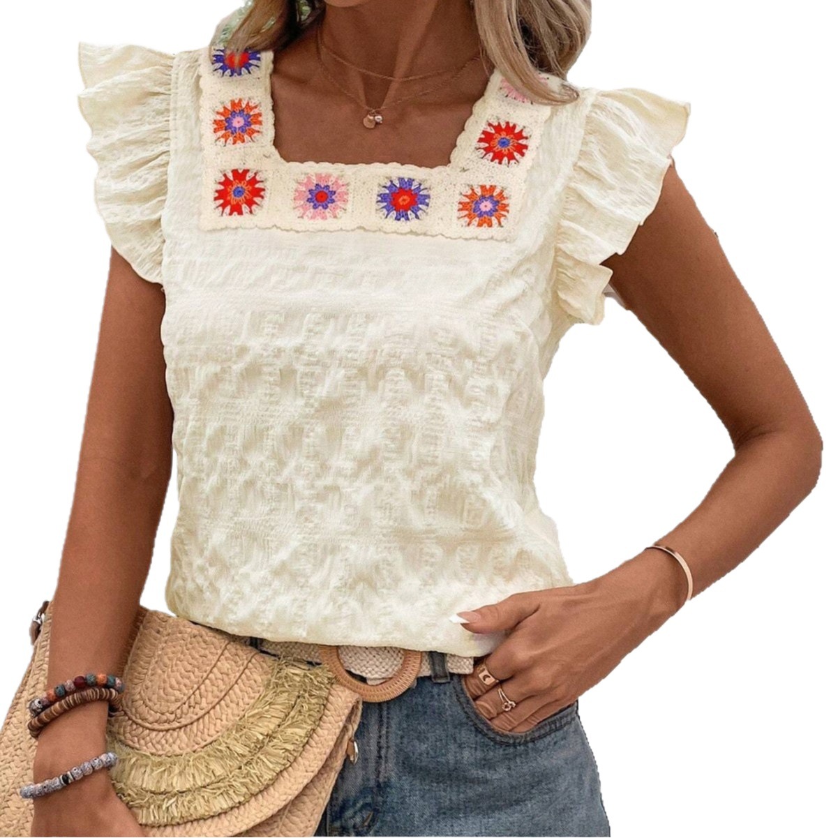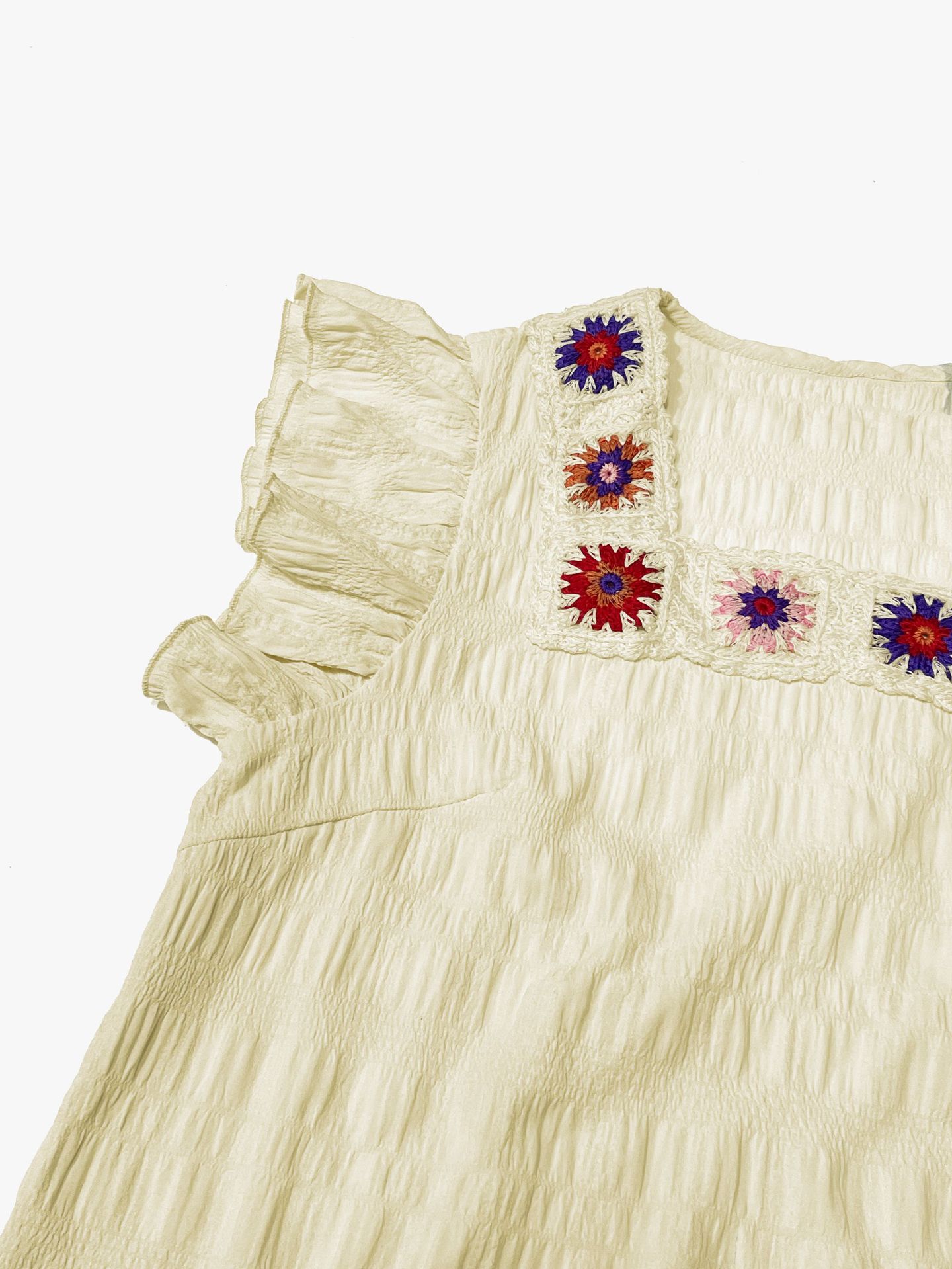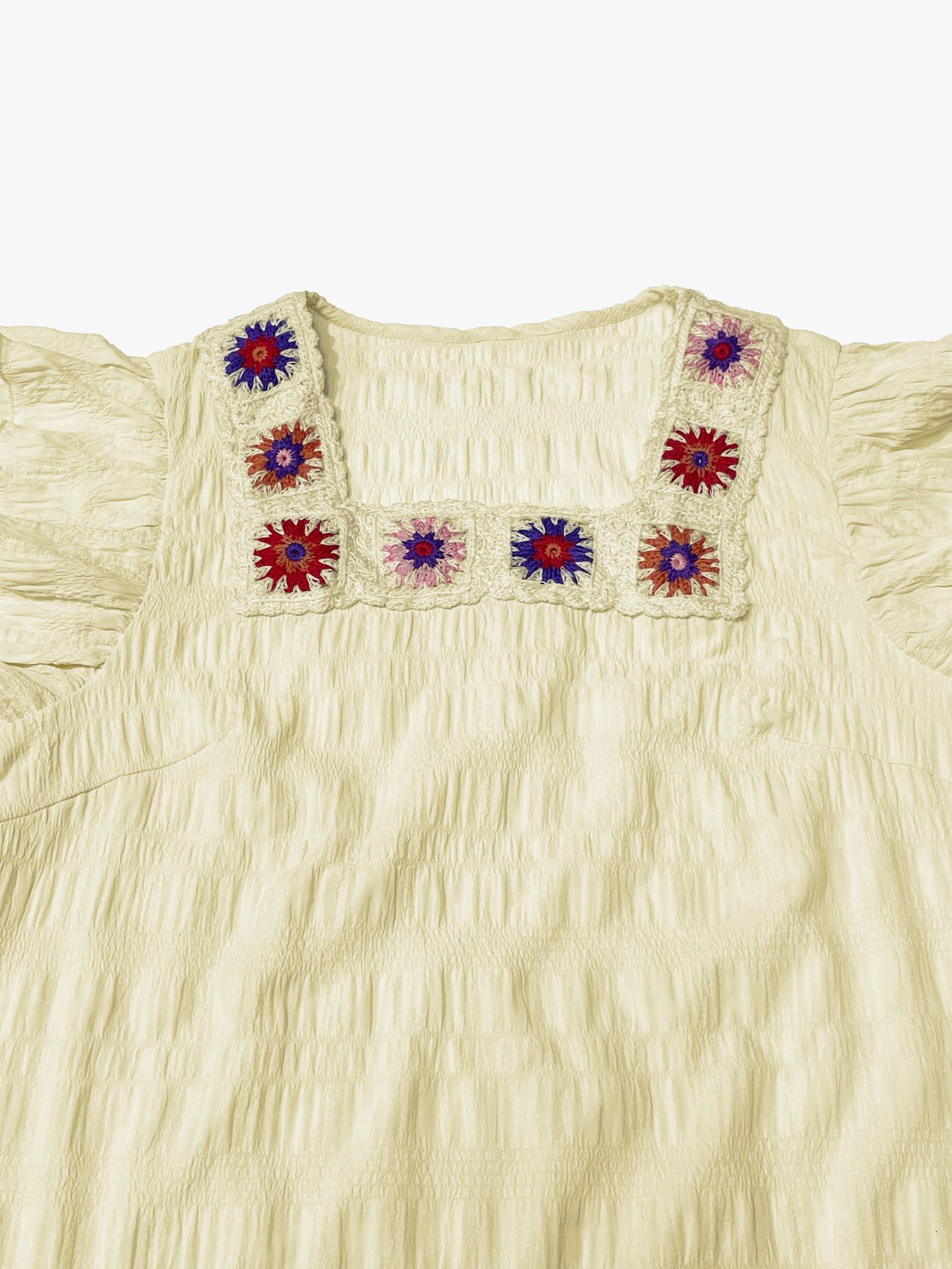 Color: Light Yellow, Lake Green Lace Trim, Dark Blue Lace Trim