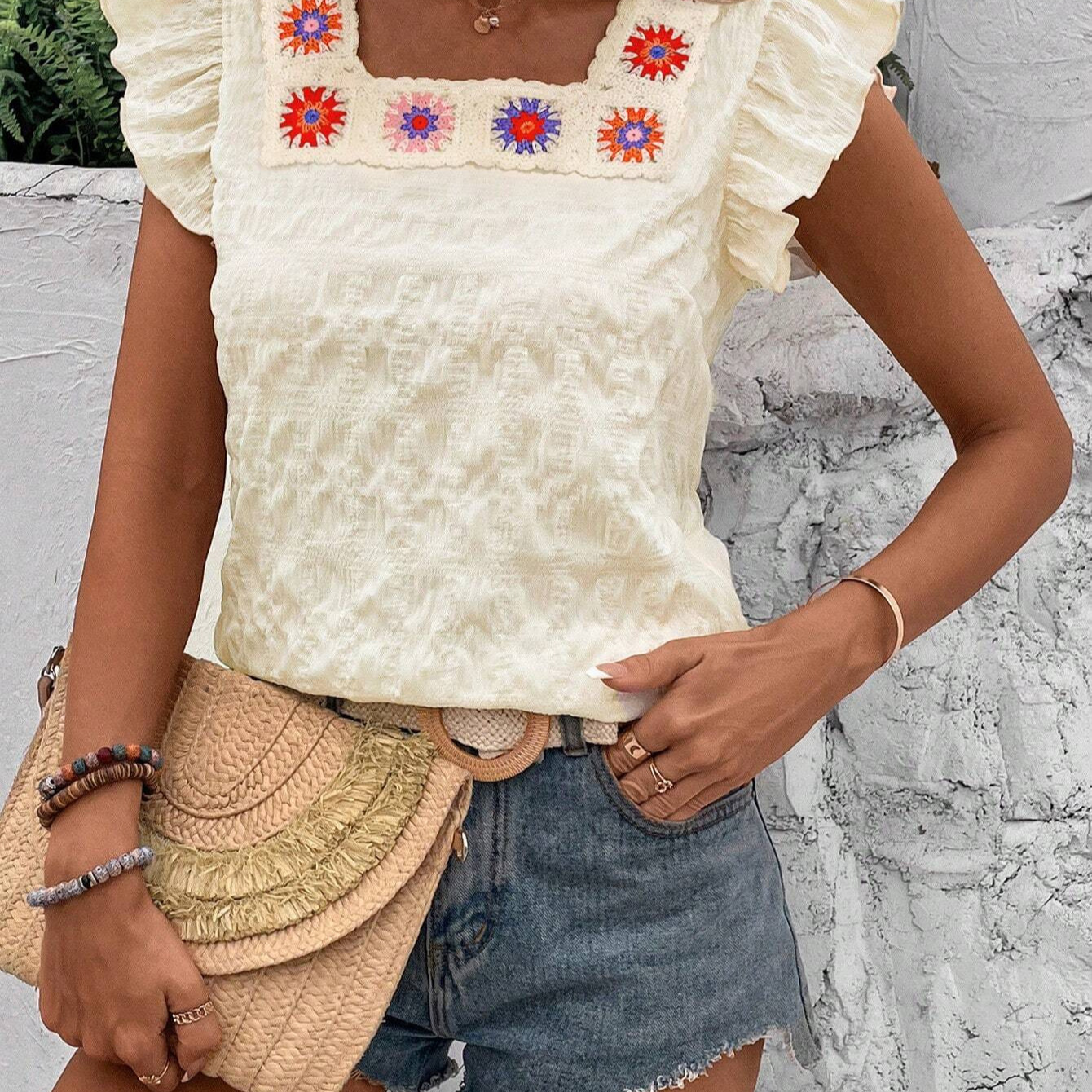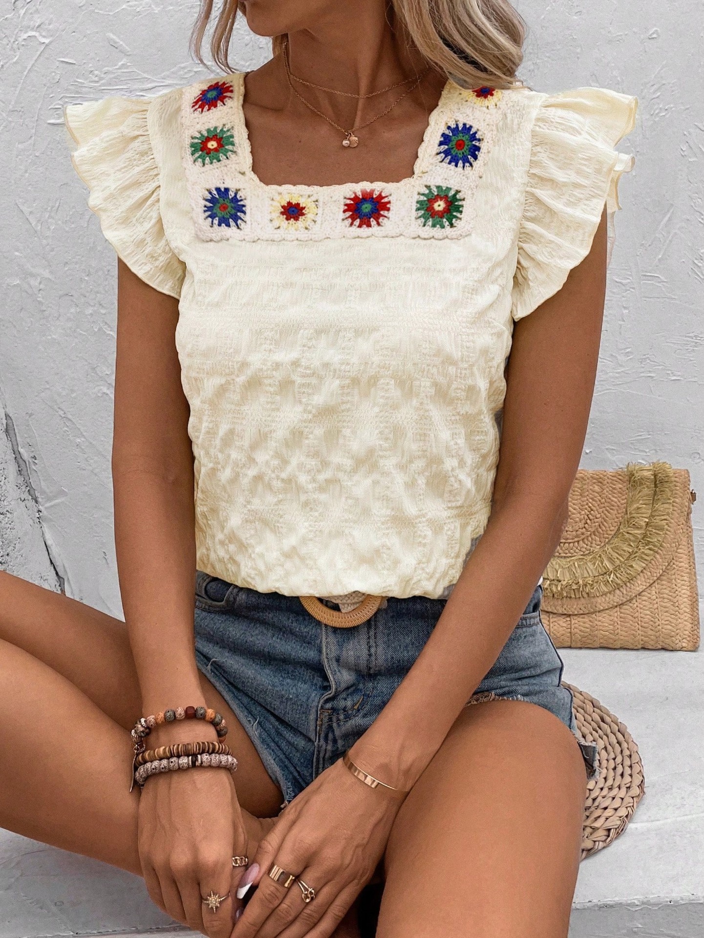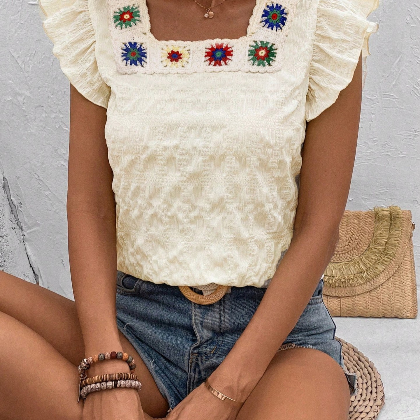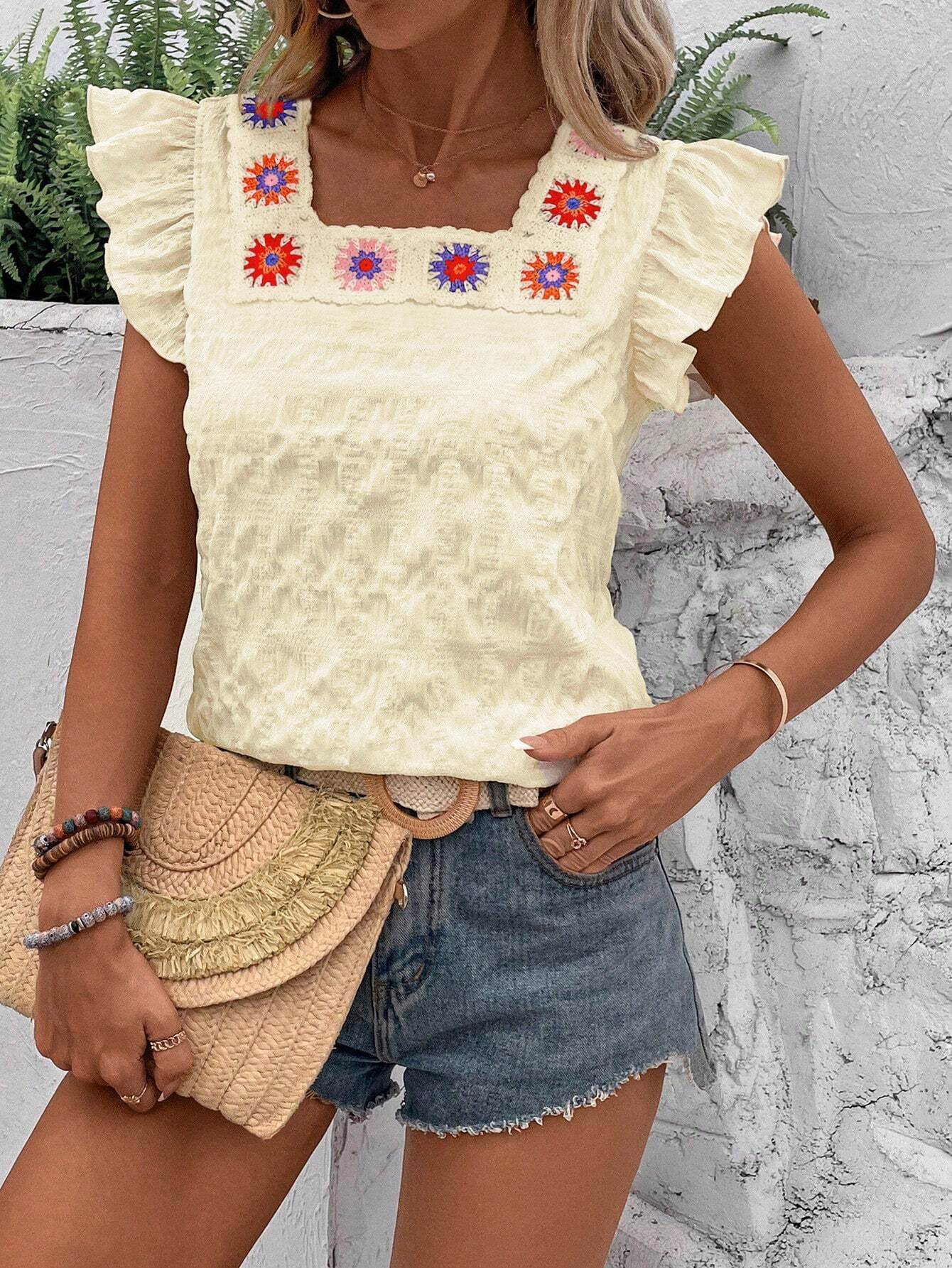 Color: Light Yellow, Lake Green Lace Trim, Dark Blue Lace Trim