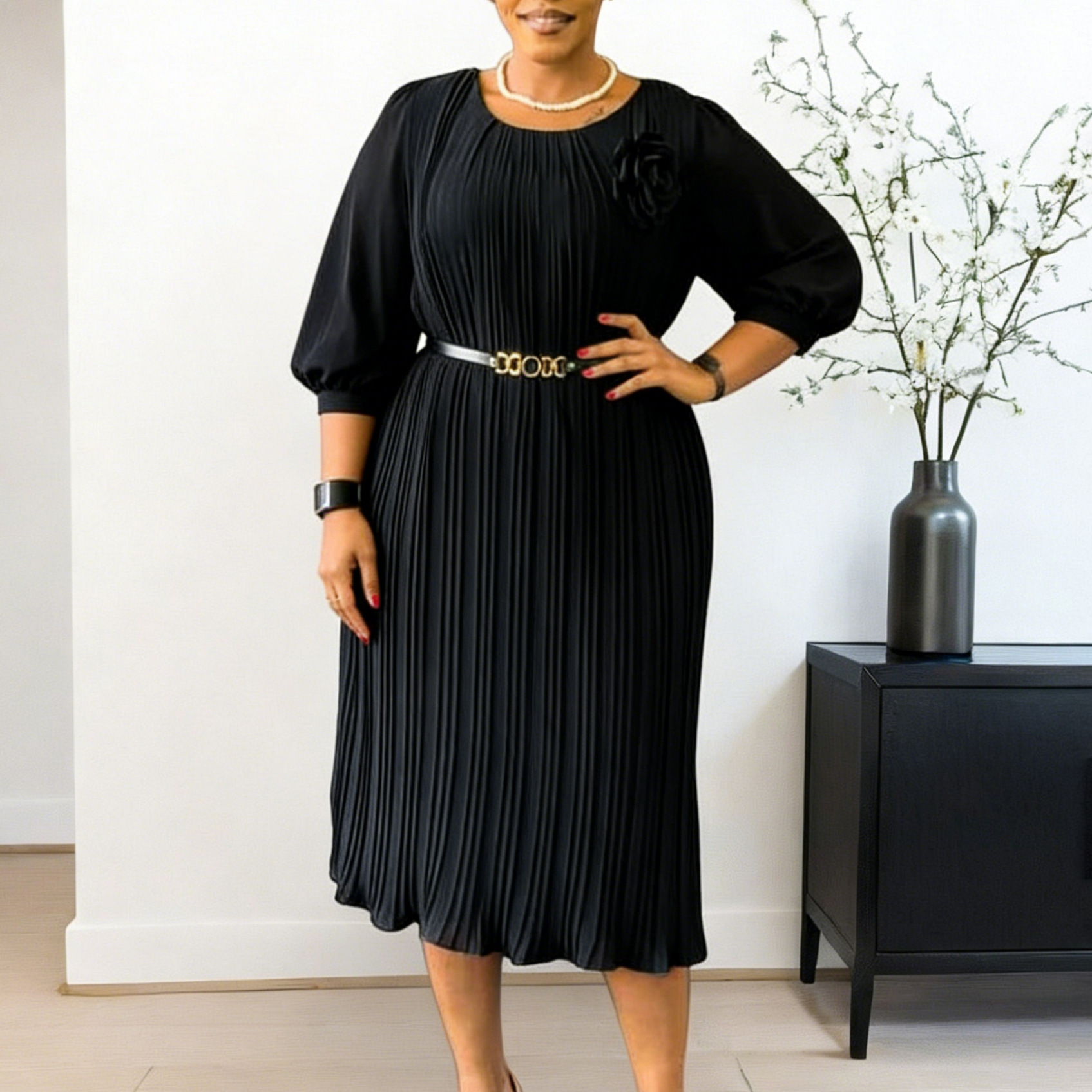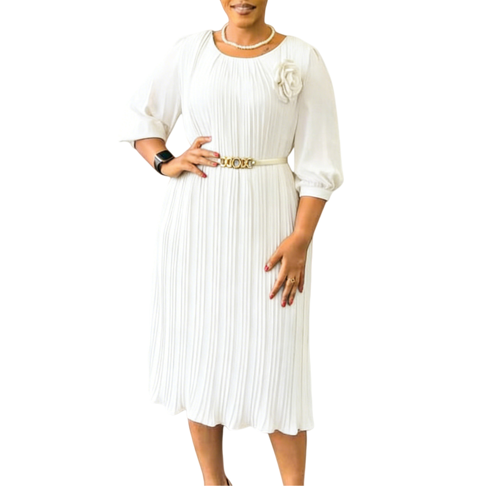 Colors: Green + belt + corsage, White + belt + corsage, Rose red + belt + corsage, Black + belt + corsage