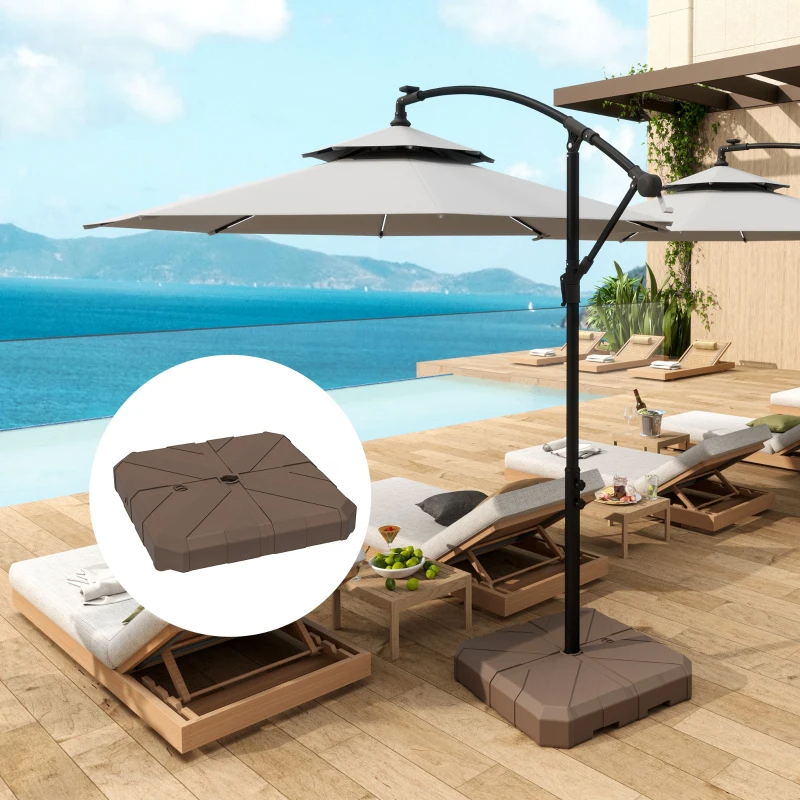 Square Patio Umbrella Base, Cantilever Offset Umbrella Base Heavy Duty Outdoor Umbrella Stand Base, Filled Up To 143lbs With Stand Or 130lbs With Water For Garden Poolside, Brown