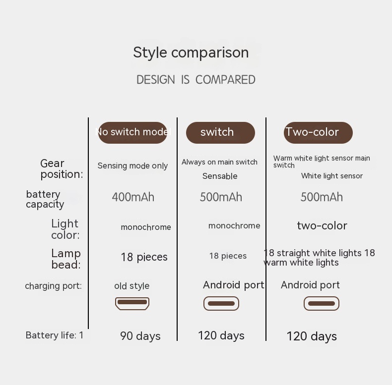 Light color: white light, warm light, two-tone