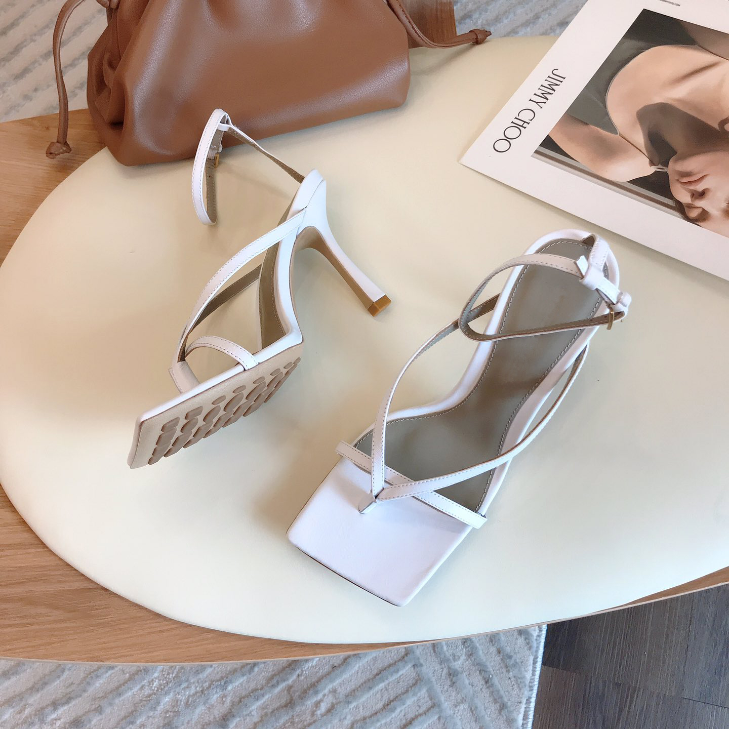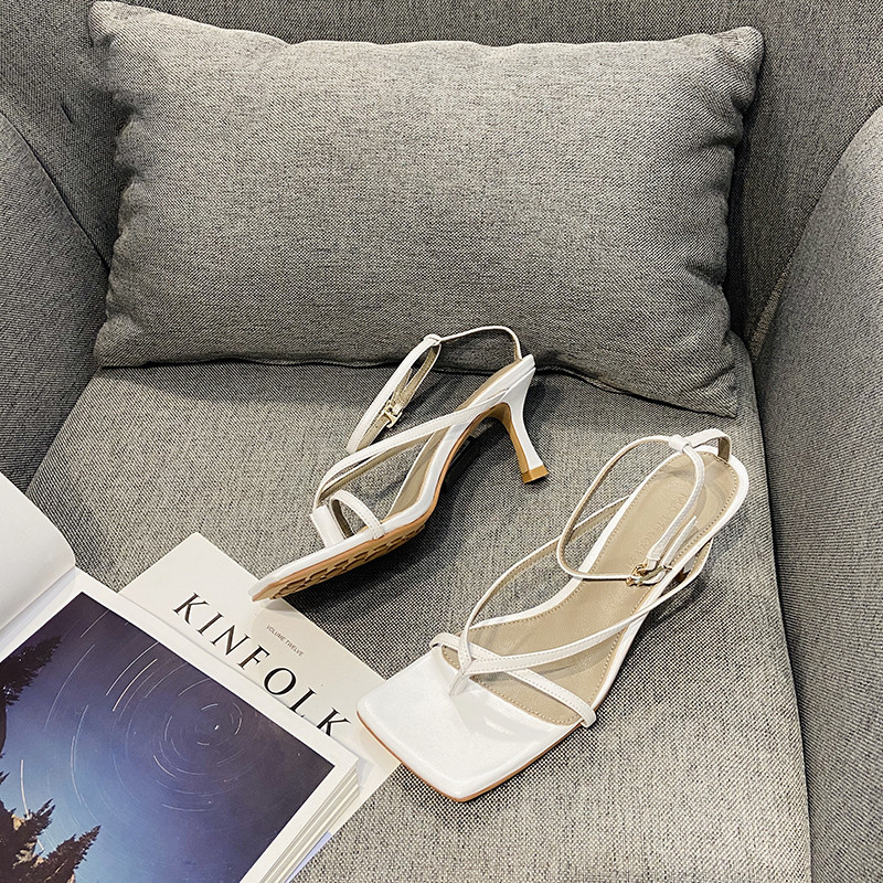 Square Toe High-heeled Sandals Female Fairy Style Ins Tide Net Red Stiletto High Heels White