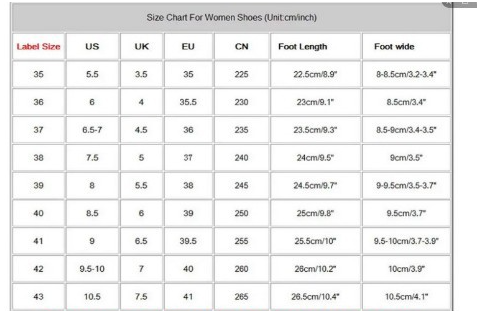 Size: 36, 37, 38, 39, 40, 41, 42, 43