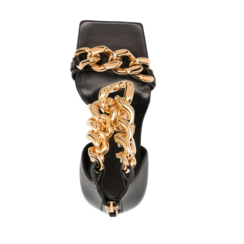 Square Toe Stiletto Chain Buckle Sandals European And American Snake Pattern