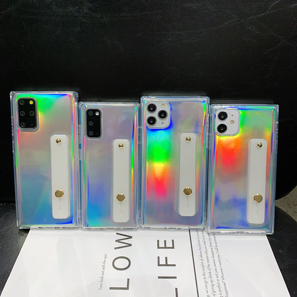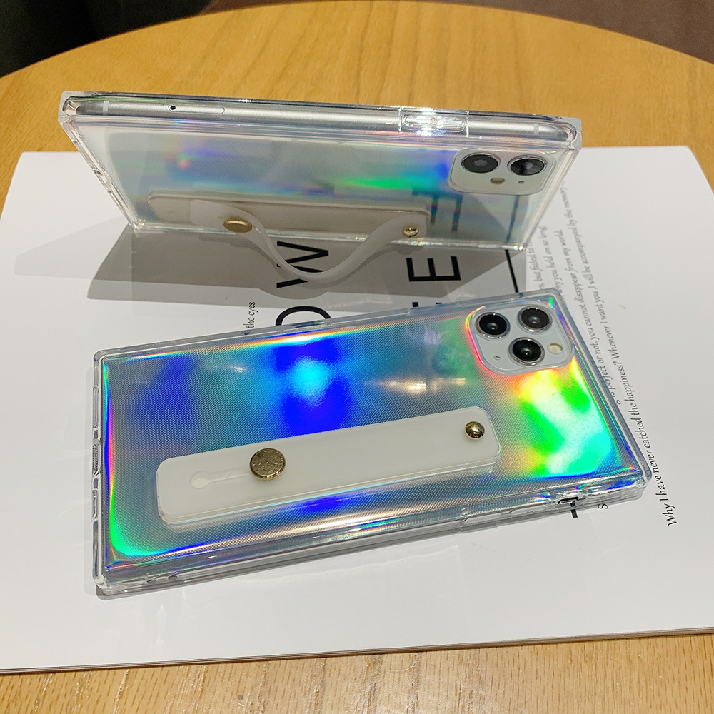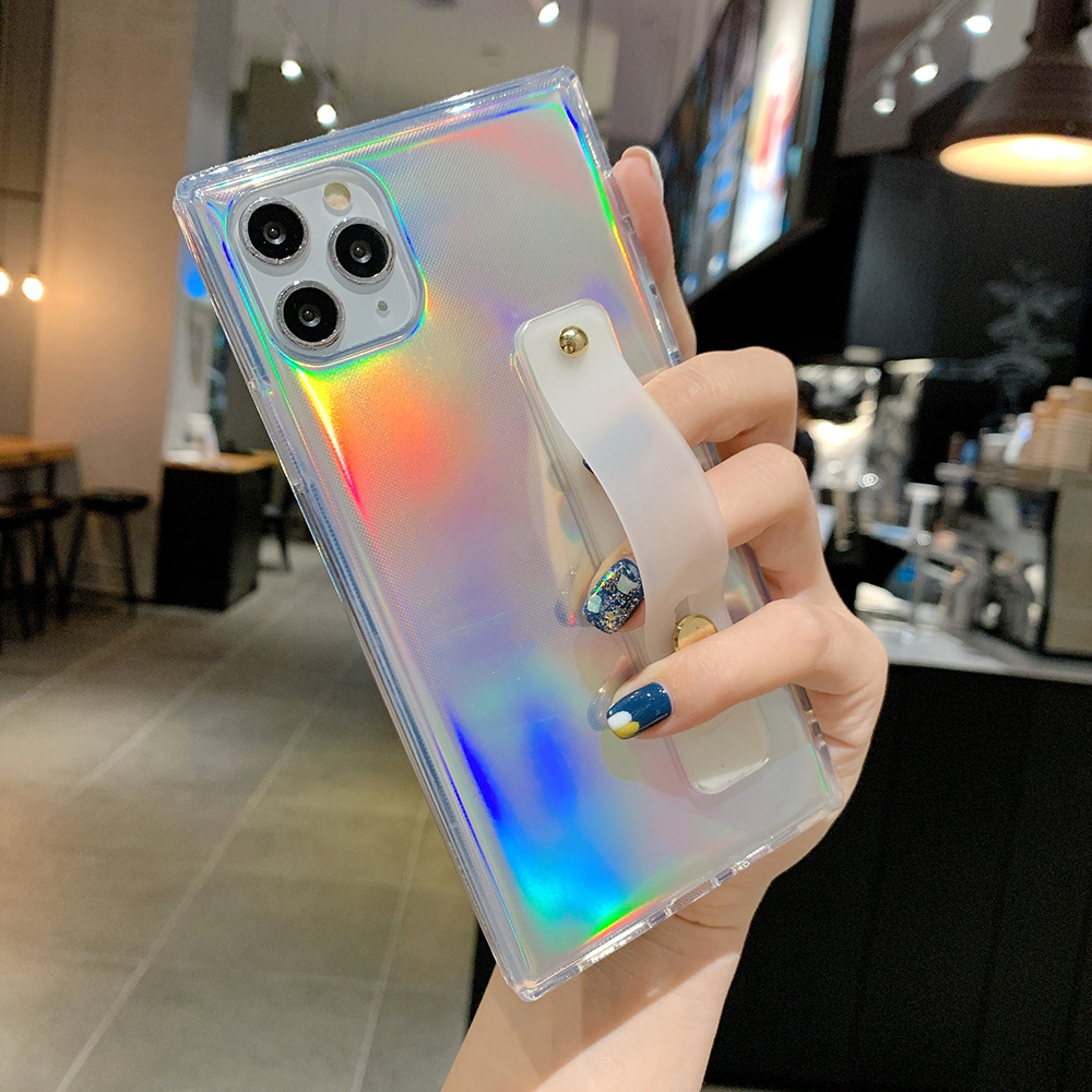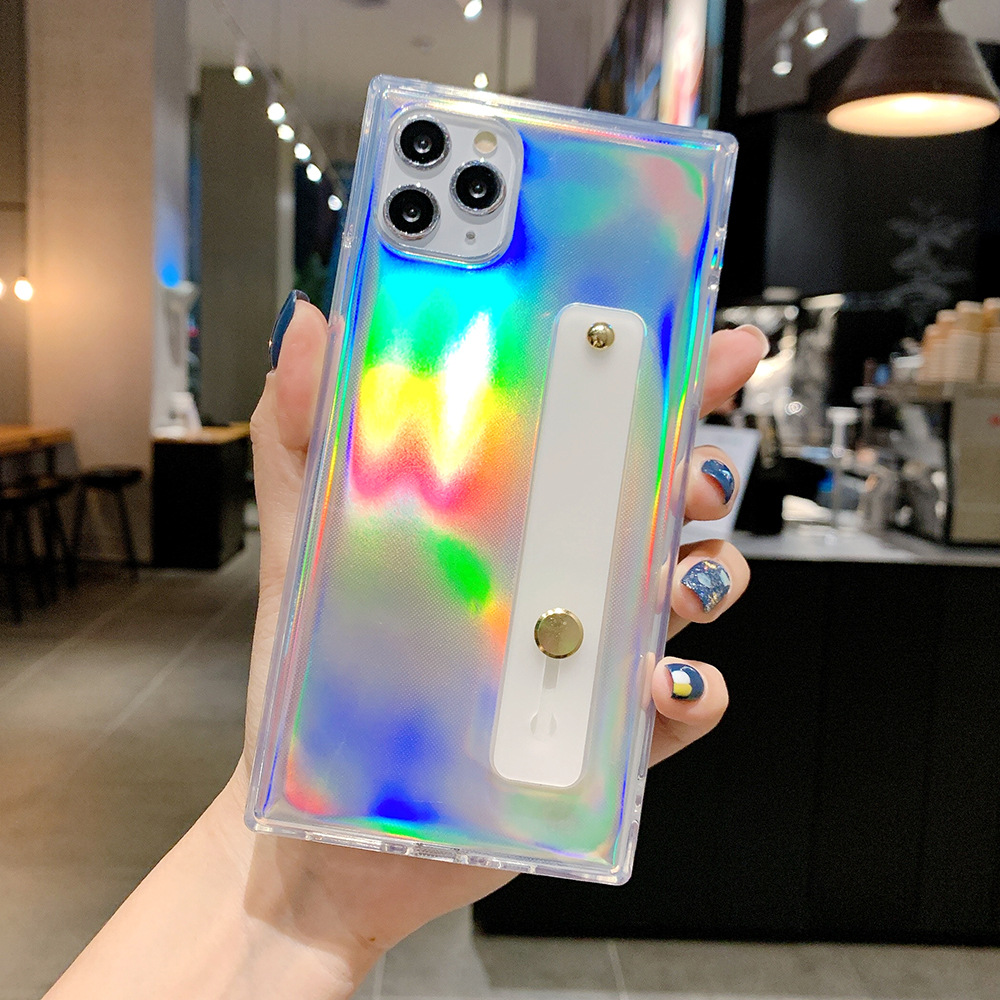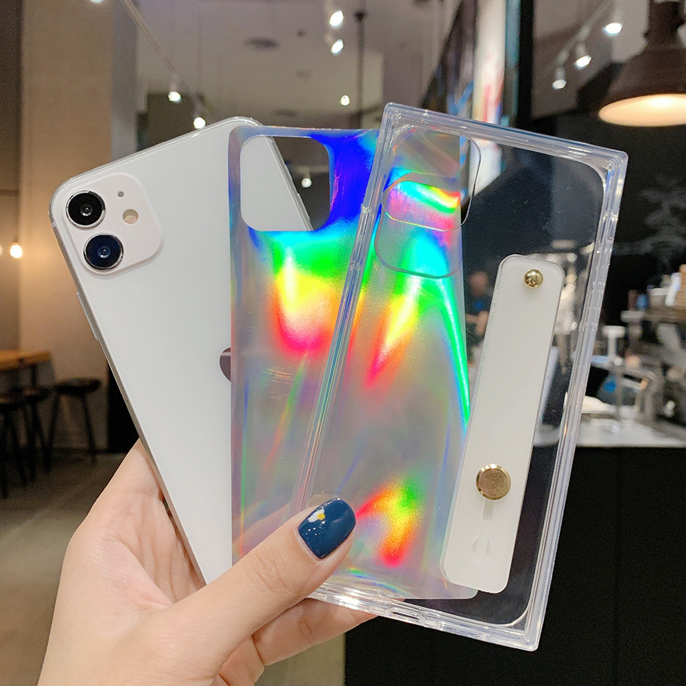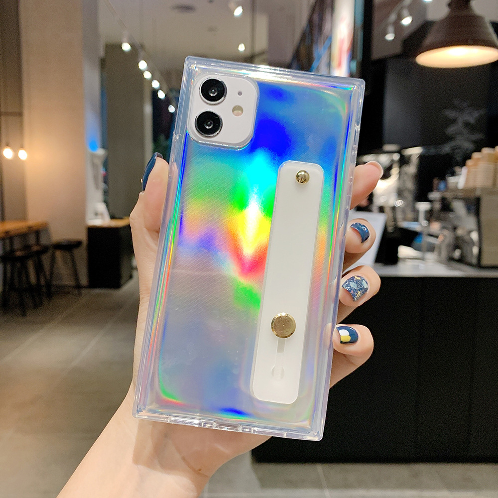Popular elements: wrist strap, silicone soft shell, square phone case, laser sticker, wrist strap, soft edge