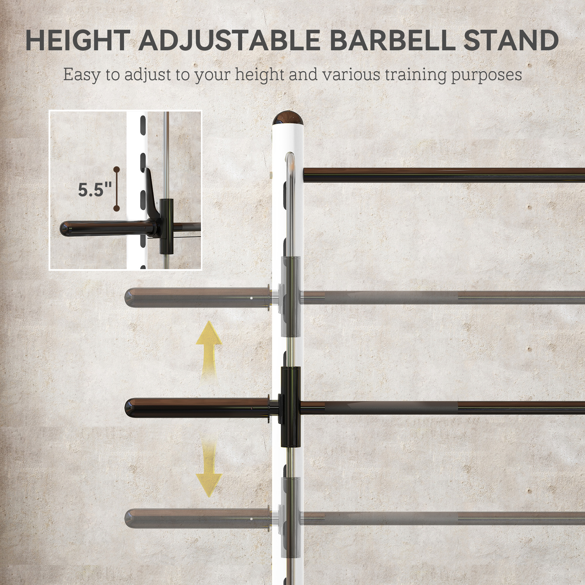 - 10-level adjustable rack height for barbell