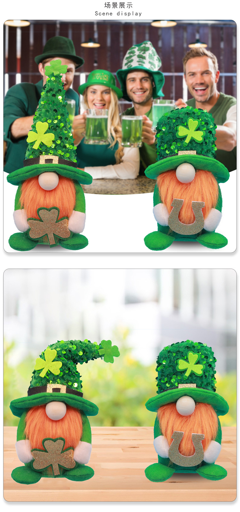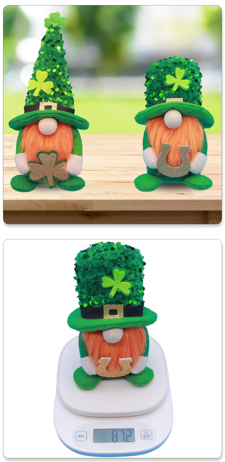 Specifications: Pointed hat four-leaf clover doll ornaments, a tall hat letters doll ornaments